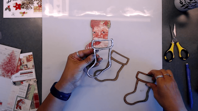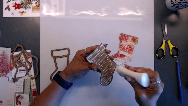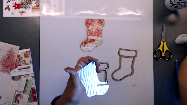 Next I took the back piece we papered and placed that on top of the stocking with glue. Be sure to press together really well.