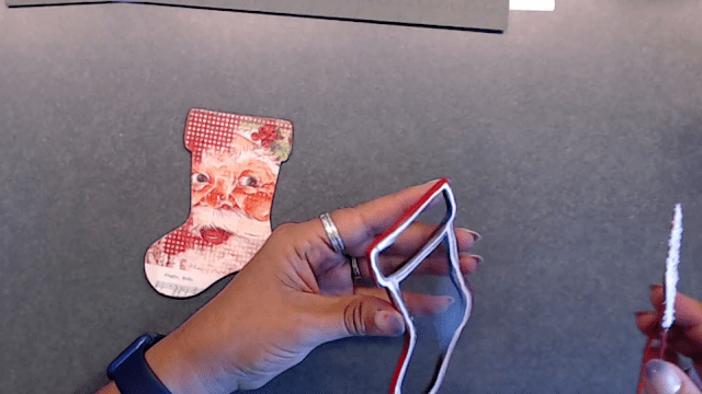 I added some white flower soft I had in my stack to the top of the stocking.