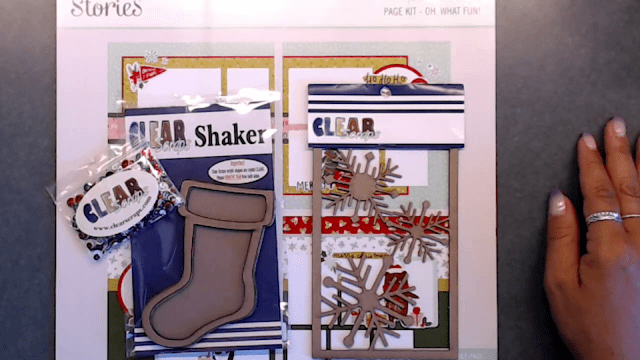 Here is the first finished layout using the Mini Shaker Stocking. It turned out so cute with the flowersoft at the top and I love the little Santa face showing through the window.