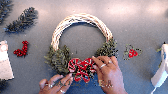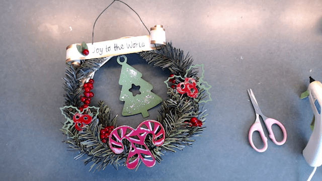 I liked adding the chipboard pieces and I think it gave the wreath that traditional Christmas feel.