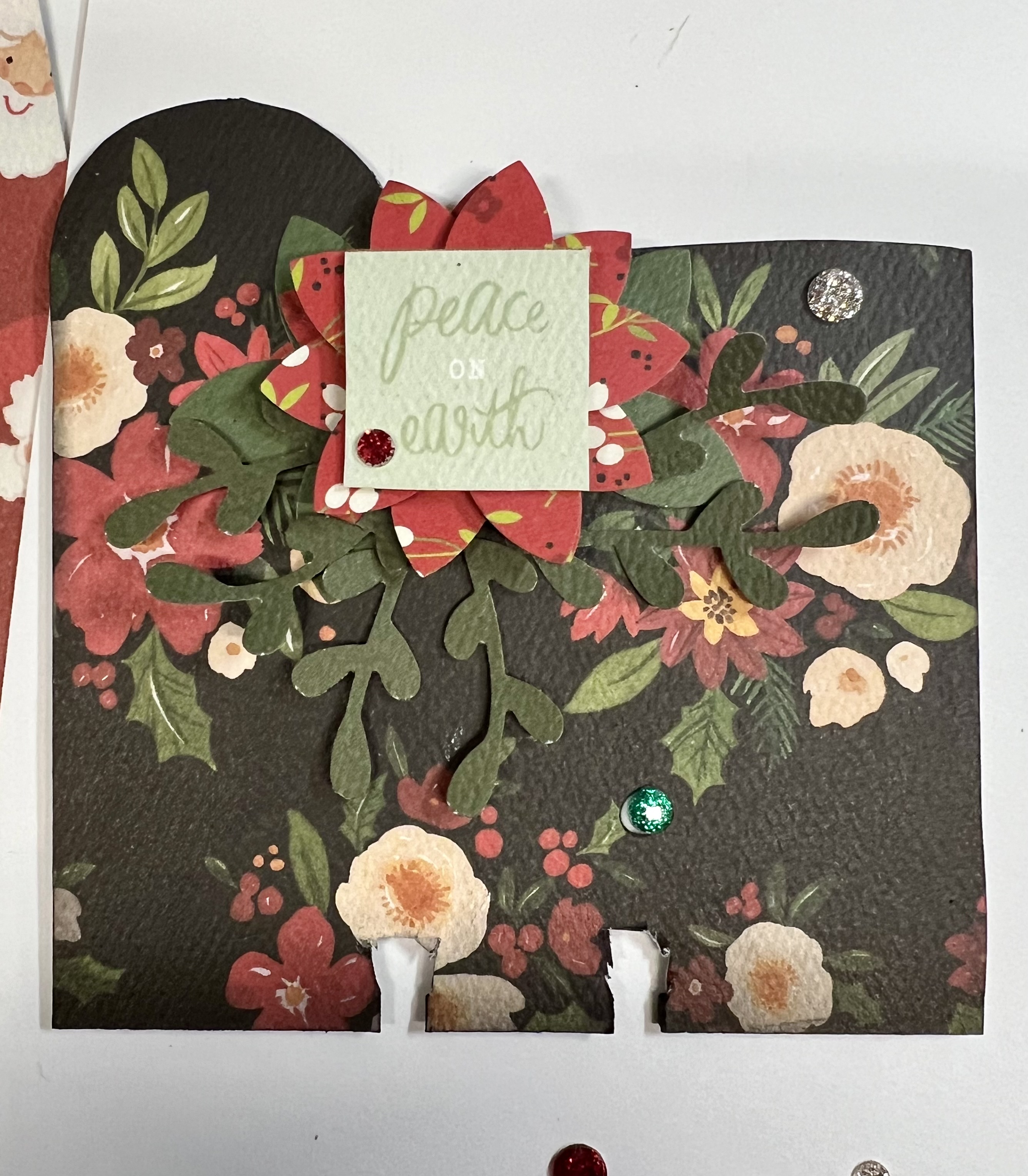 For some whimsy and fun. Using a Santa background paper. I fussy cut one Santa out to pop up for the “I believe in Santa” banner. This is so cute!