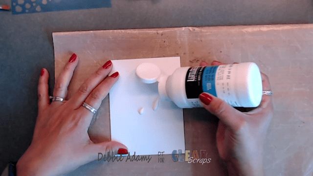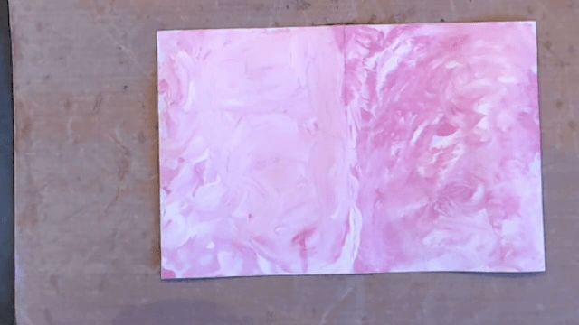 Now that our white cardstock is dry grab your acrylic paints and place over your cards. This will get a little messy, if you would like you can always put on gloves.