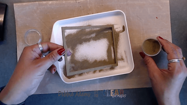 I then sprinkled some Range embossing powder using Princess Gold, covering the frame entirely.