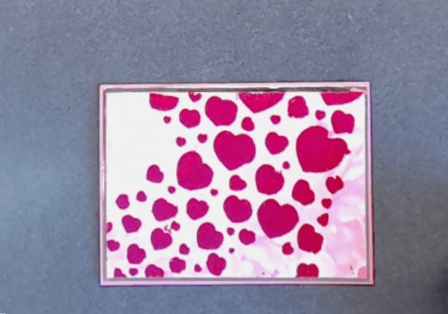 After I let the hearts dry a bit I layered it on my card base. Now we get to decorate.