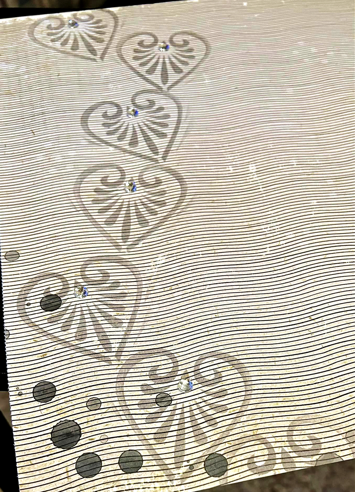 Once the border was done, I added a rhinestone to the center of each heart shape to give it a little sparkly bling. Next up was to create the shaker embellishment.