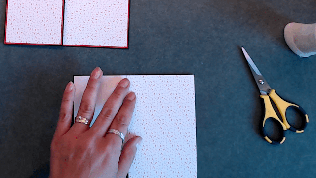 Turn the frame over and cover the right hand side back side of the frame with pattern paper.