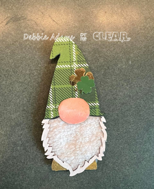 For the gnome I traced his hat area onto a pattern paper and cut out and adhered onto the