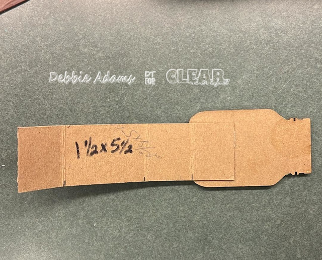 Use a chipboard piece measuring 1 1/2 x 5 1/2 inches, make tick marks on the bottom at 1 1/8, 2 3/8, and 4 3/8 inches this is where you are going to fold and crease your stand, as shown below. Adhere the last piece that you marked at 4 3/8 at the bottom of the mason jar and you will fold over the where creases are and the end piece with adhere to the back of the mason jar.