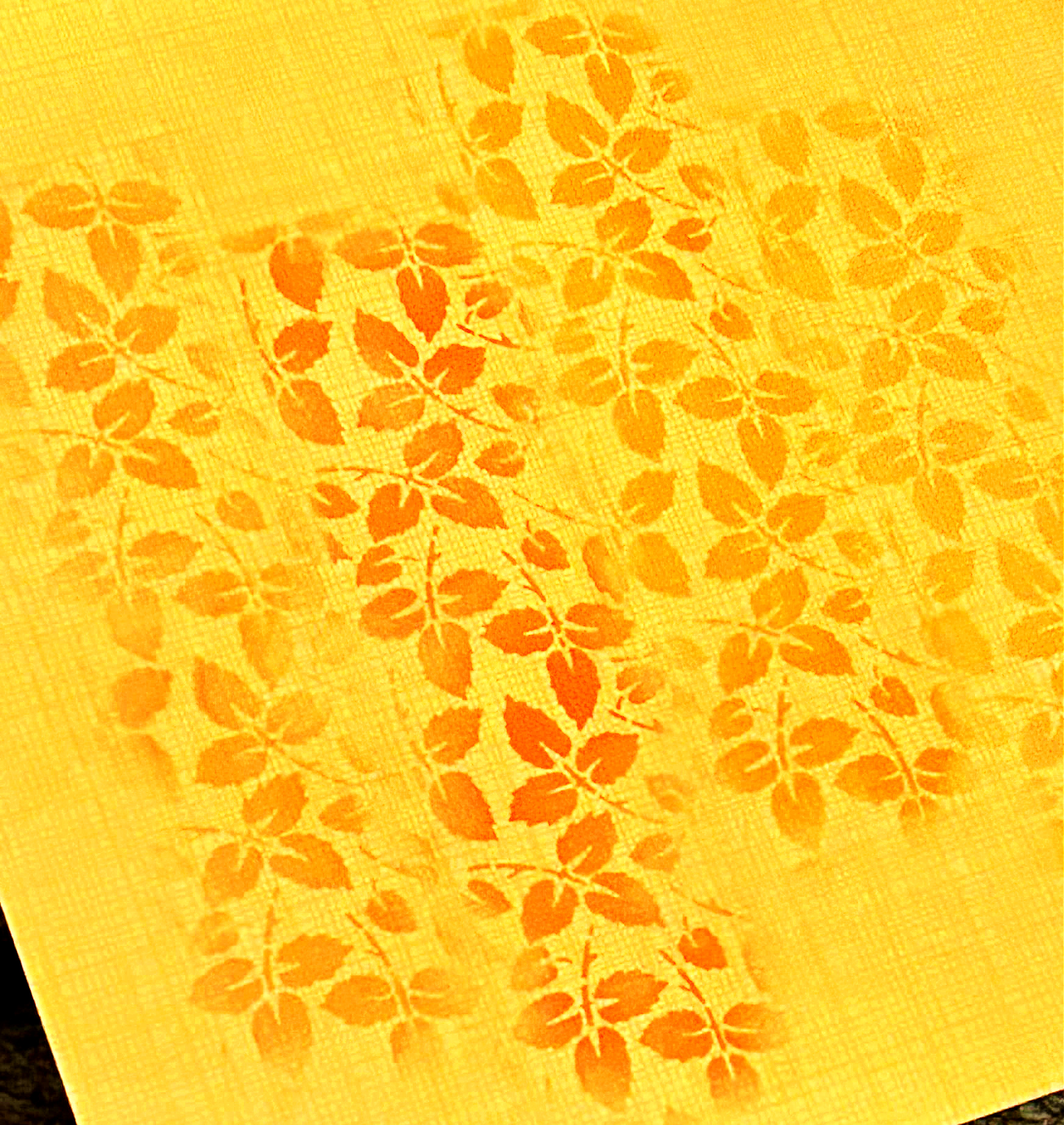 To start the base of this LO, I started with a bright yellow/orange paper and then grabbed the Clear Scraps 5×9 Leaves Mixer Stencil. Truly a favorite, it's so versatile!
