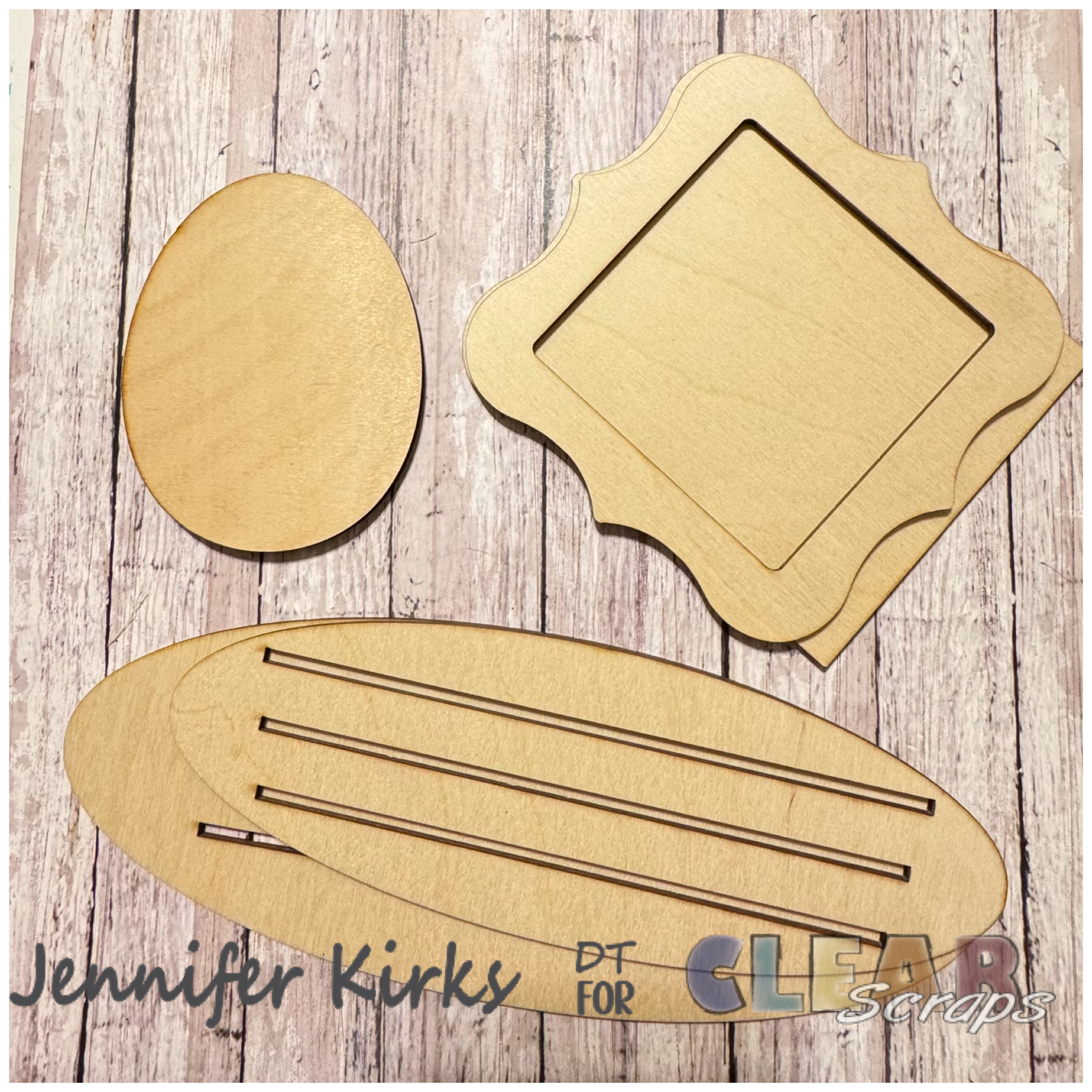 Hello and happy spring. It is beautiful here in south Texas. Temps are in the 80's, wild flowers are blooming, blue bonnets are popping up everywhere and Easter is right around the corner. I found these Easter pictures I took with my daughter when she was 2 and decided to make a picture frame to showcase that special day. I used the Base with deco frame and the egg from wood spring collection to make the frame.