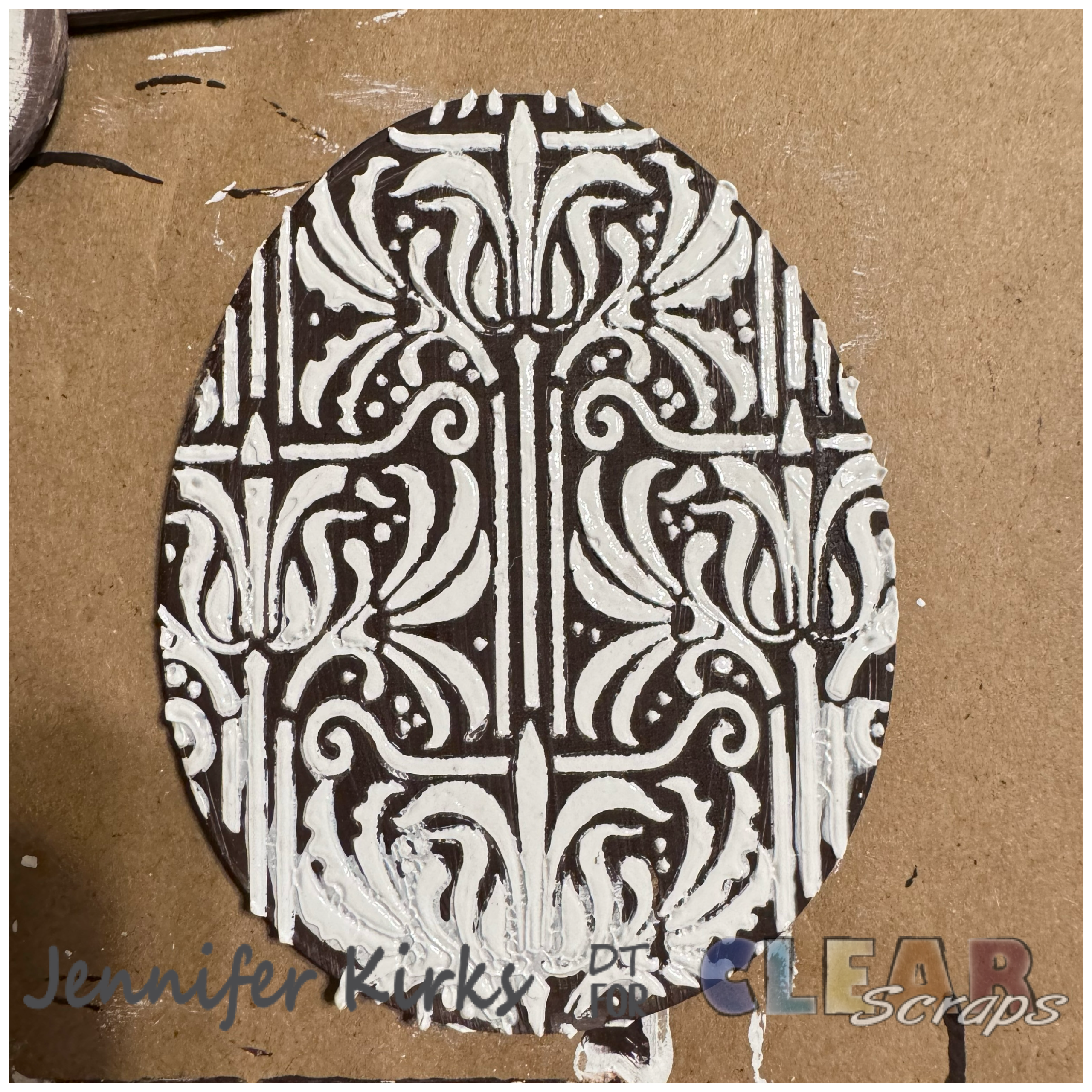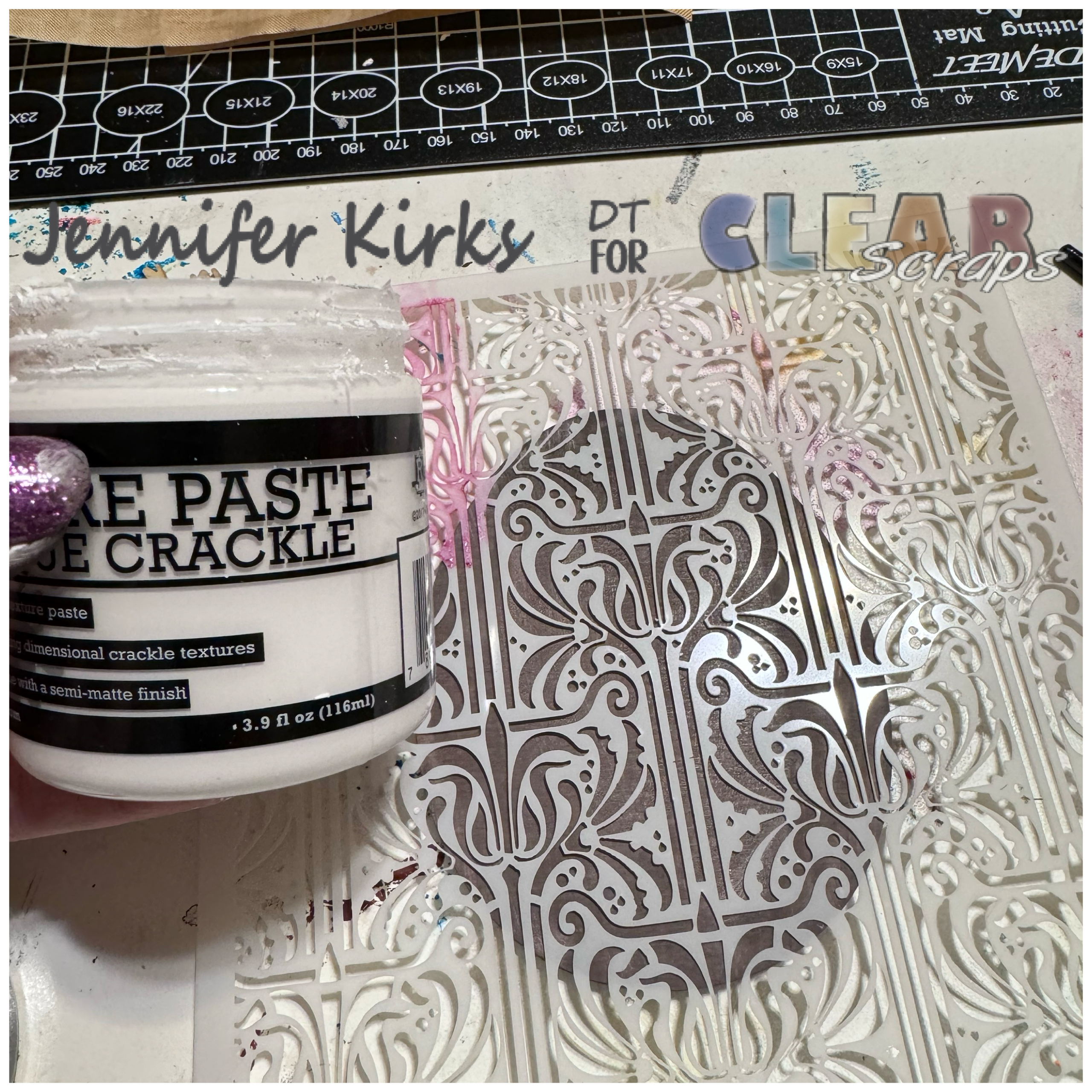 Once the egg was dried I used crackle paste and a stencil to create the design on the egg.