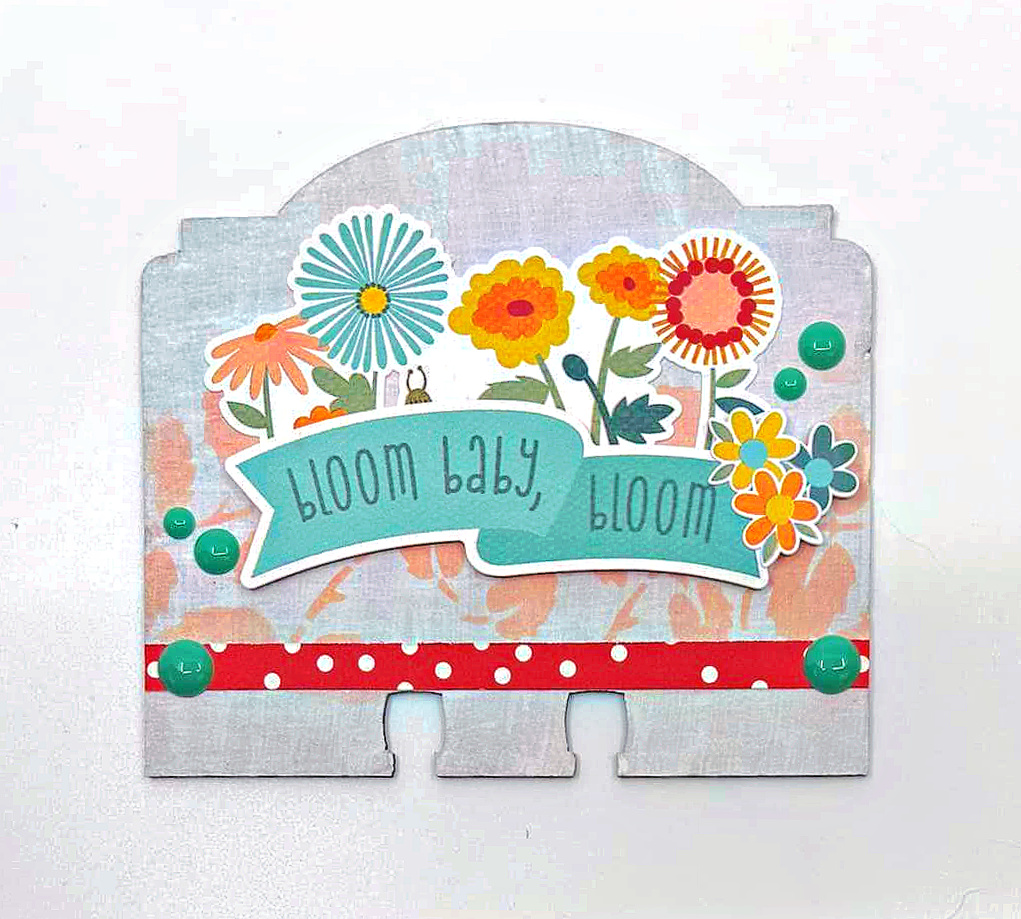 Other: acrylic paint-white, Distress Ink-ripe persimmon, Simple Stories Full Bloom, papers, stickers, ephemera, enamel dots, foam tape.