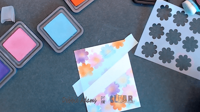 Once you have finished the top of the card move the tape a little bit down so you have about a 2 inch diagonal space between the top and bottom flowers you're stenciling.