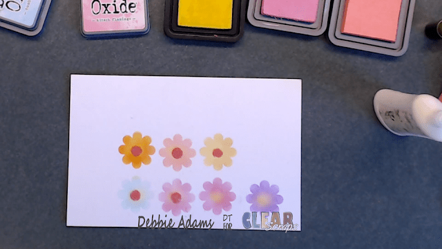 For card #2 we used the 4 x6 Hello Peeps Stencil . This stencil is so cute. I laid it down and just applied my ink as shown below. The size of this card is 4 1/4 x 5 1/2 inches.