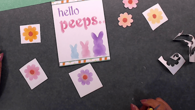 4 x6 Hello Peeps Stencil inked with fun bright colors, so full of Spring and Easter.