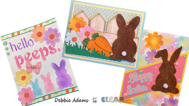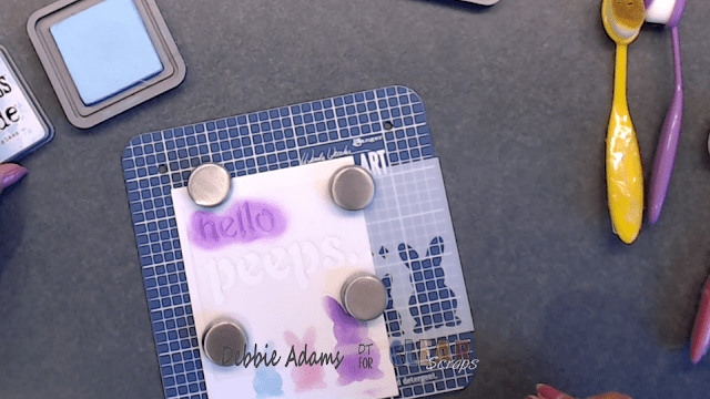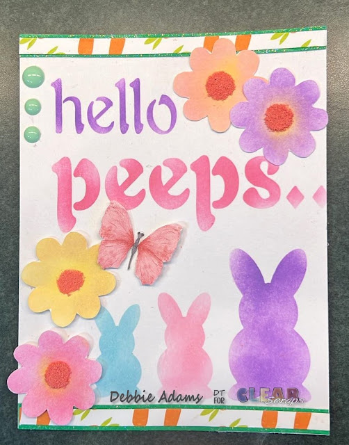 I hope you all are doing well. Easter is on it's way can you believe it. So with that being said I have some fun Easter Cards you can create for Easter using Clear Scraps 5×9 Flowers Layering Stencil, Bunnies Chipboard Embellishments and the 4 x6 Hello Peeps Stencil.