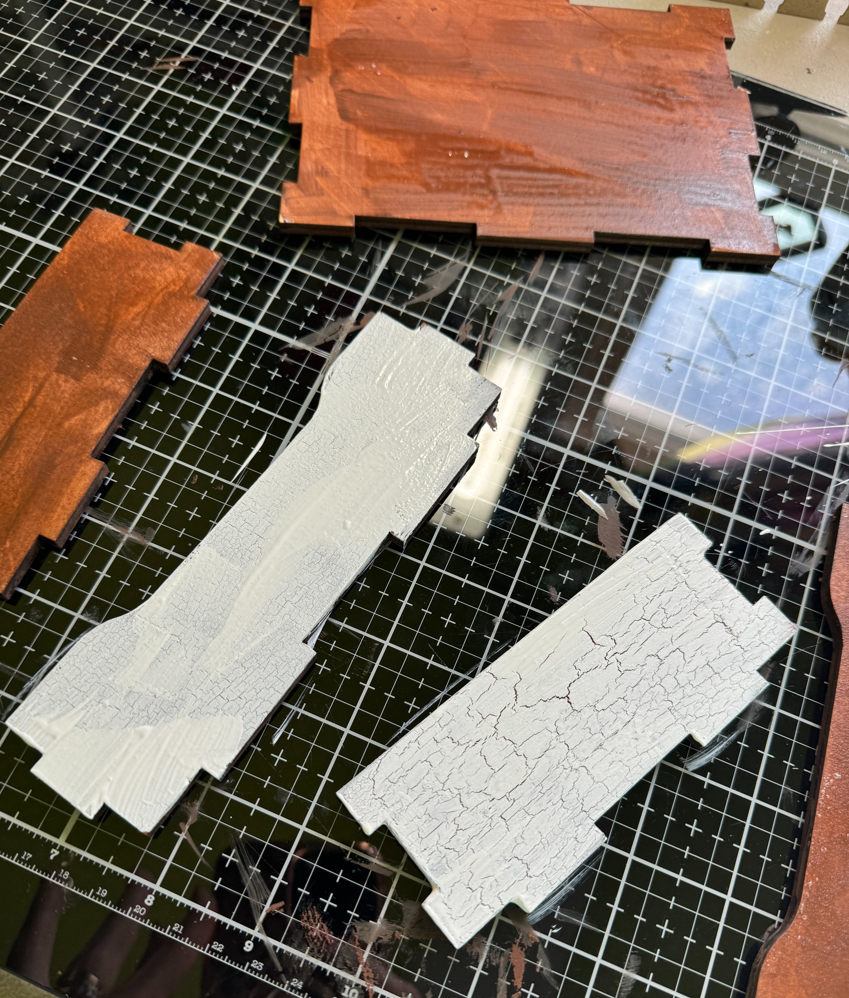 I started by painting my Clear Scraps Regular DYI wood box with brown acrylic paint. Once the DYI Box was dry, I added a coat of crackle medium and let dry.
