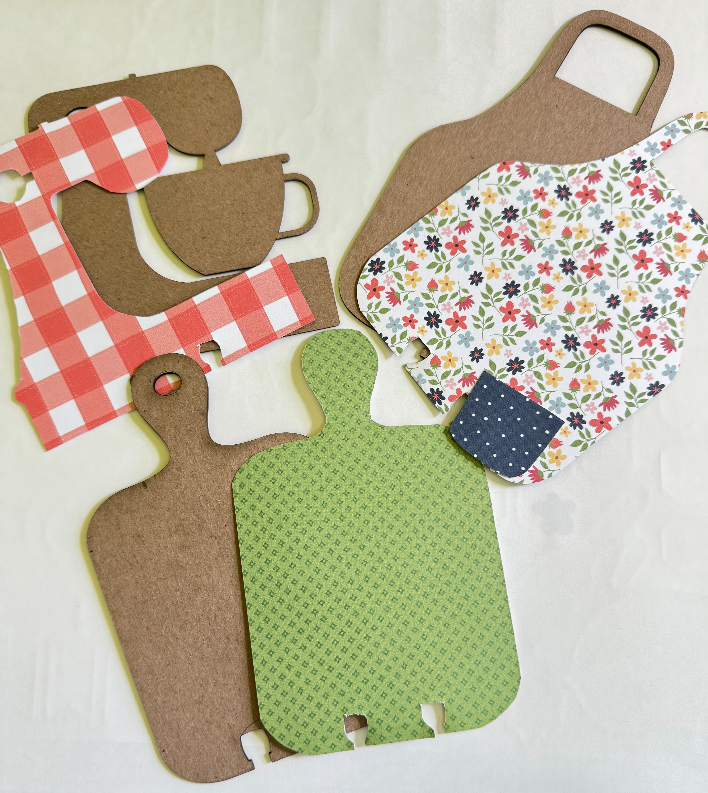 Repeat tracing your dividers until you have all your pieces cut. I did choose to add silver paint to my mixing bowl. I even hand cut a cute little pocket for my apron!