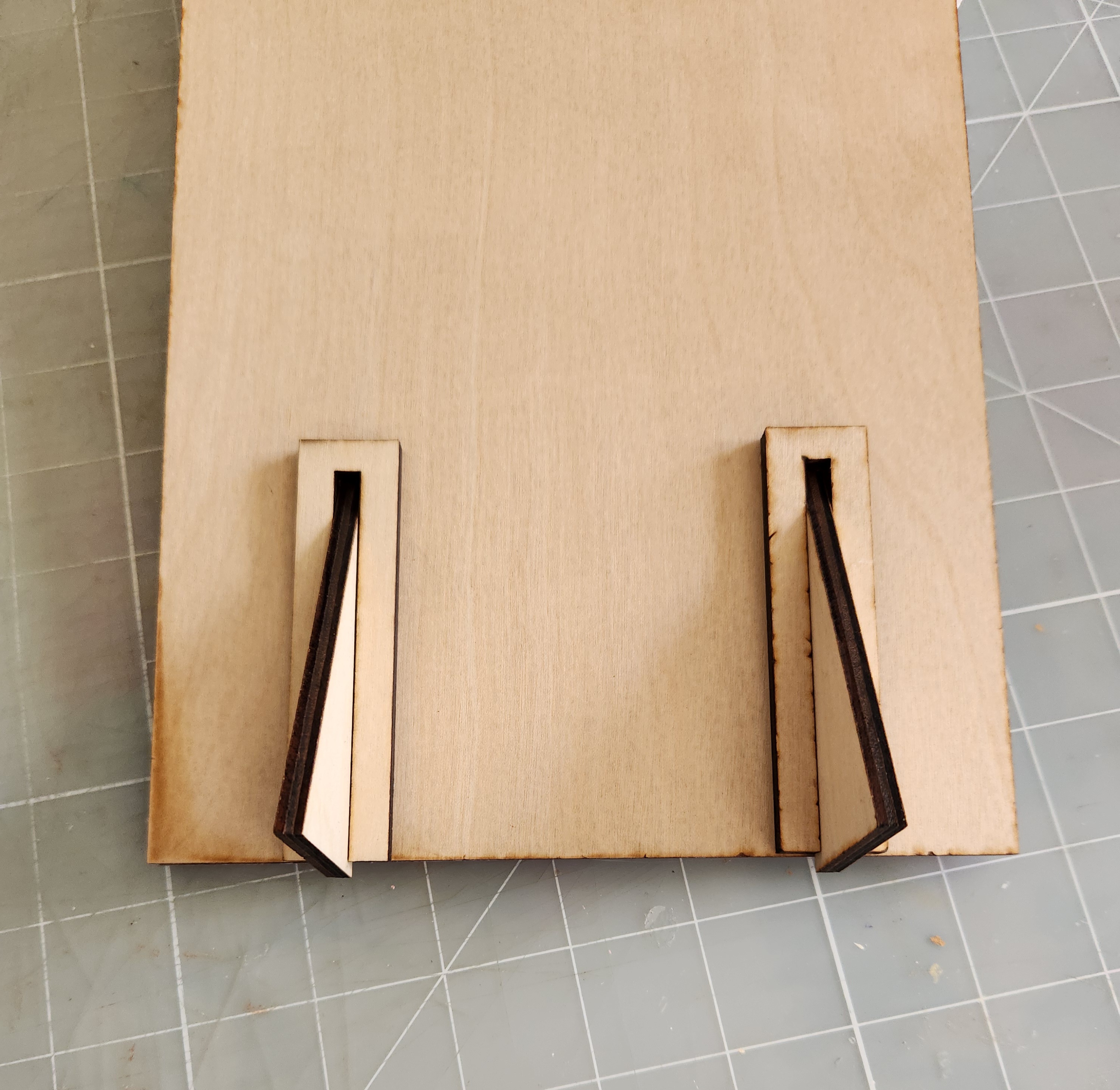 Take your stand pieces and glue onto the back of your door. Let dry throughly before proceeding. Here's a closeup look: