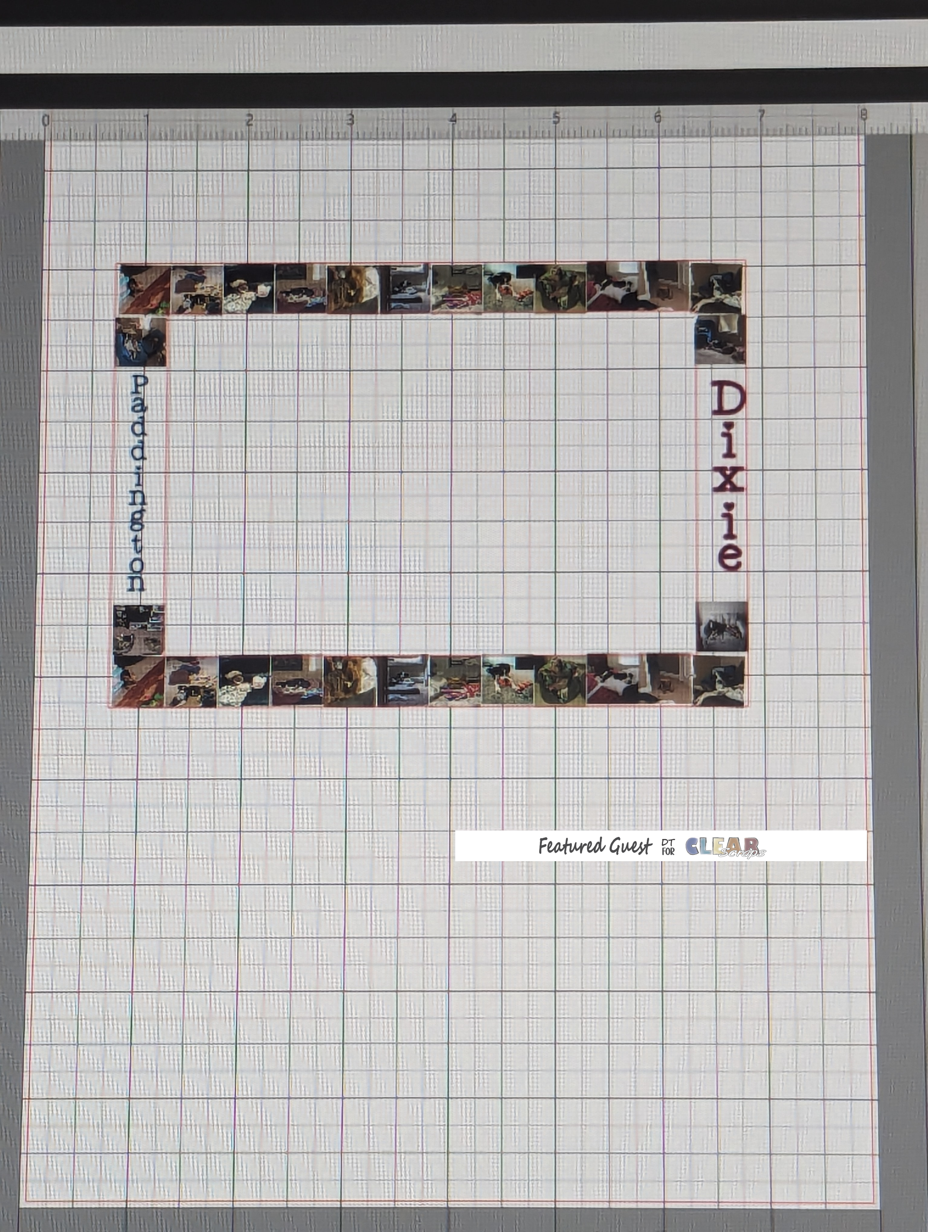 Start by taping your tissue paper to a piece of cardstock. Then you need to open your computer program of choice (Word, Design Studio, Adobe, etc) and design your frame. I picked a free printable scrapbook paper for the top “Friends”. I added that to my blank page. Then I drew a picture frame using squares. Once I entered in the measurements of the actual frame, I sized my pictures to fit. In this case, my pictures were half an inch square. I arranged my pictures and added names. Once I was happy with my pictures, I hit Print. I personally do not change any settings on my printer.