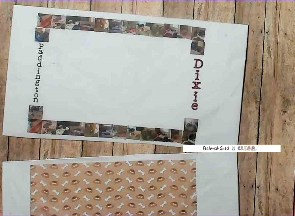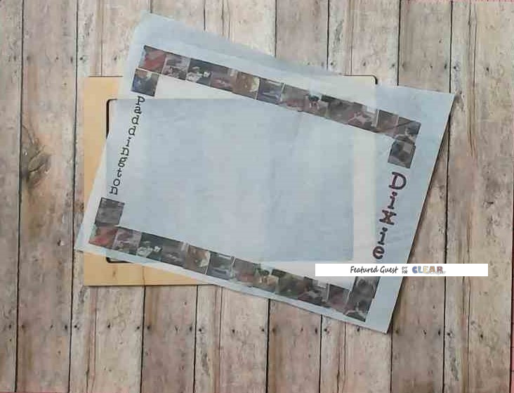 When I first saw this frame, I knew it would be perfect to showcase the friendship between my son and his dogs. There’s no bigger bond than a boy and his dog! First, you need to collect your supplies. You will need a piece of cling film, a piece of parchment paper, regular white tissue paper, and a piece of cardstock. You will also need an iron.