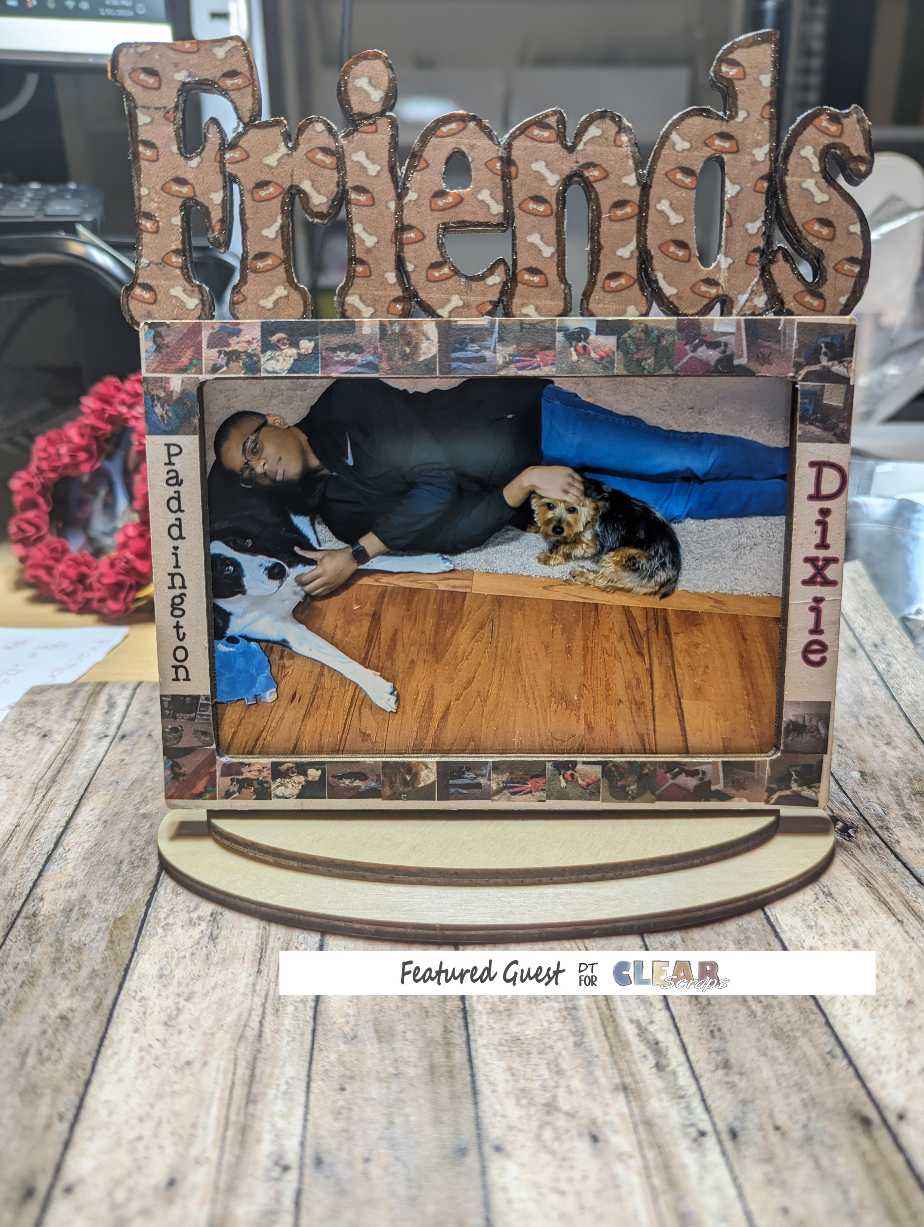 I then outlined the word with a brown alcohol marker and a silver gel pen for sparkle. I decided to use repositionable glue dots to hold my picture and the frame part to the base. This way I can change the picture. I did not cover the stands because the tan matches my décor; but you can do the same process on the stands. I absolutely love the way this Friends Frame turned out! ~Tiffany McGill