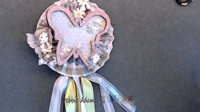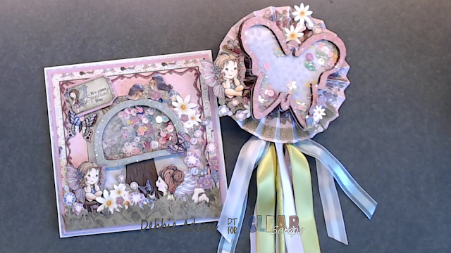 butterfly shaker wand with the flowers and little fairies I fussy cut from the paper collection I used. I also added on the back of the butterfly an action wobble which allows the butterfly to bounce and sway back and forth.
