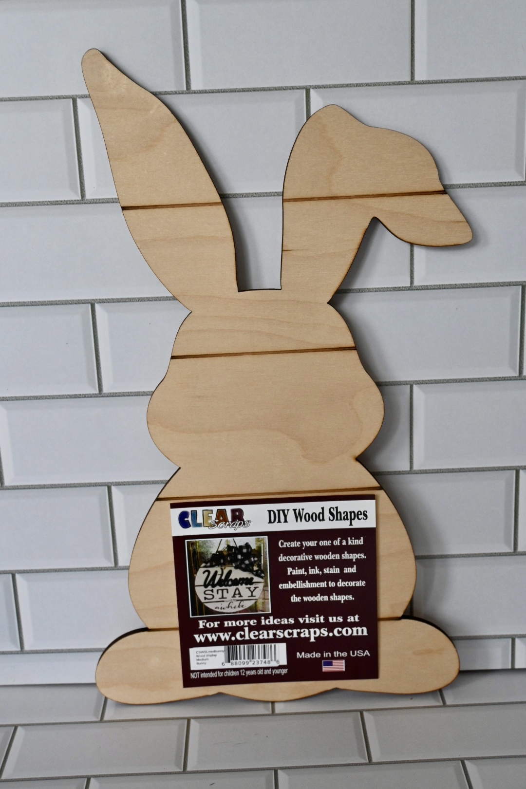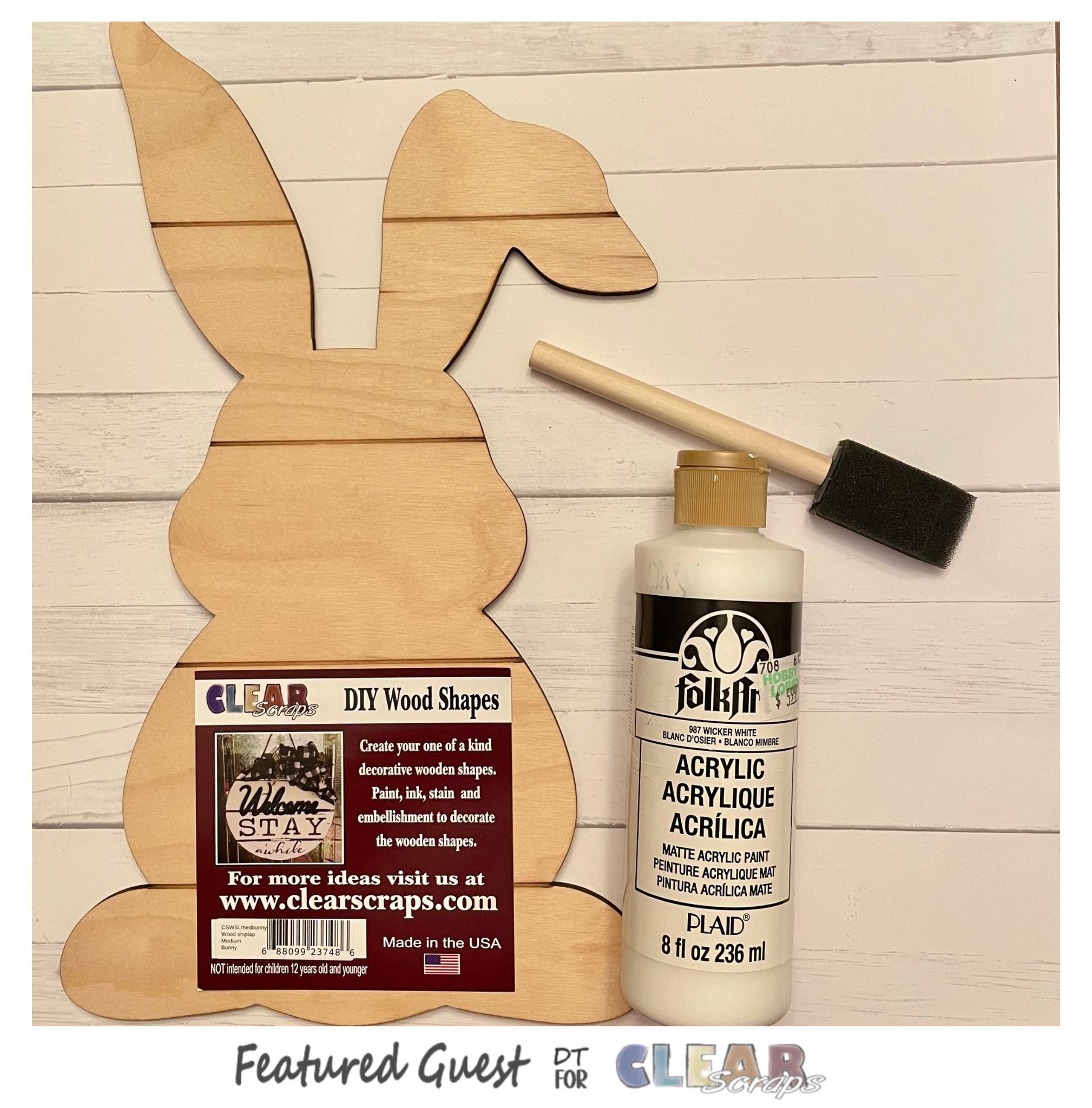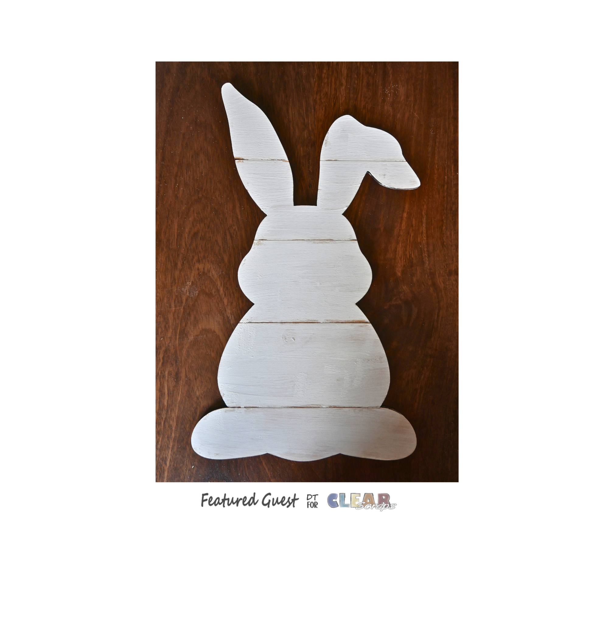 Hello all–It's Kelly here with you again today. I'm back! 🙂 This month I am featuring a wood pallet shape, and I was lucky to get a bunny. (See all of the pallet offerings here.) Isn't he adorable just in the silhouette? And I don't know about you, but when Easter falls early, I keep my decorations out the whole month of April too. So, if you are the kind who likes to do a seasonal project, Clear Scraps always has the perfect item, and the various sizes means you can get just the right one. Find your own bunny via Product Code: CSWSLMEDBUNNY or this guy: medium pallet bunny