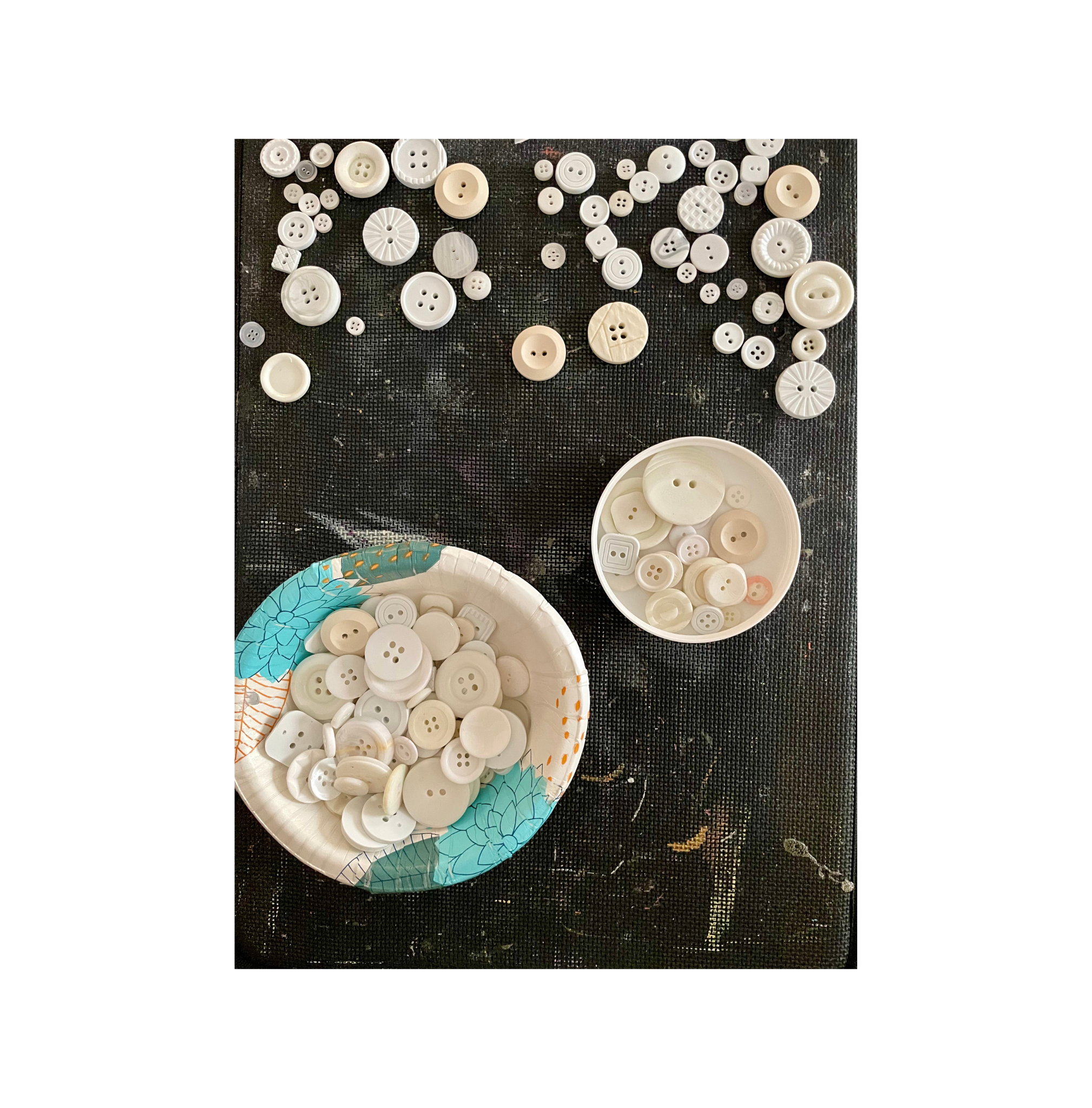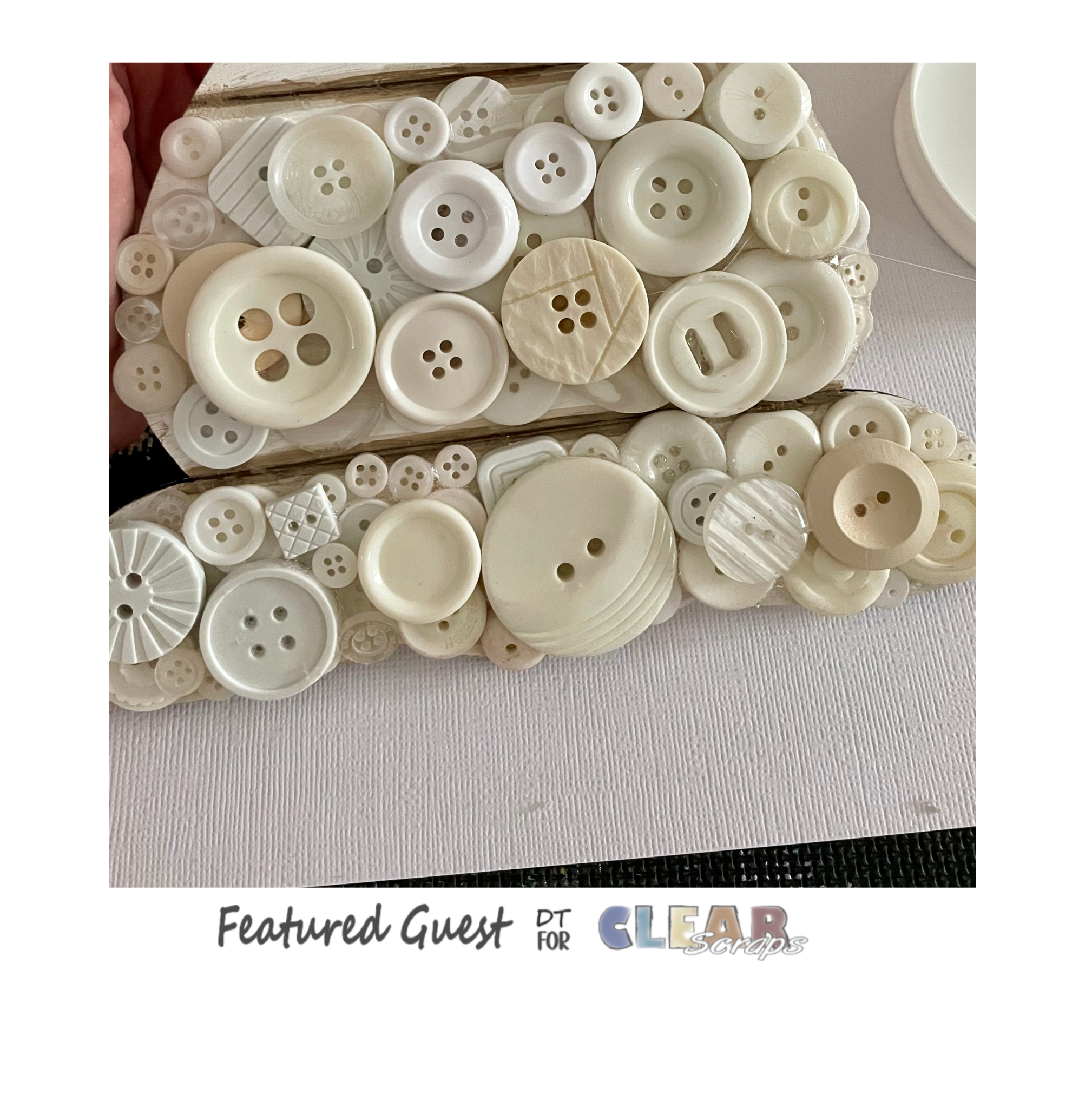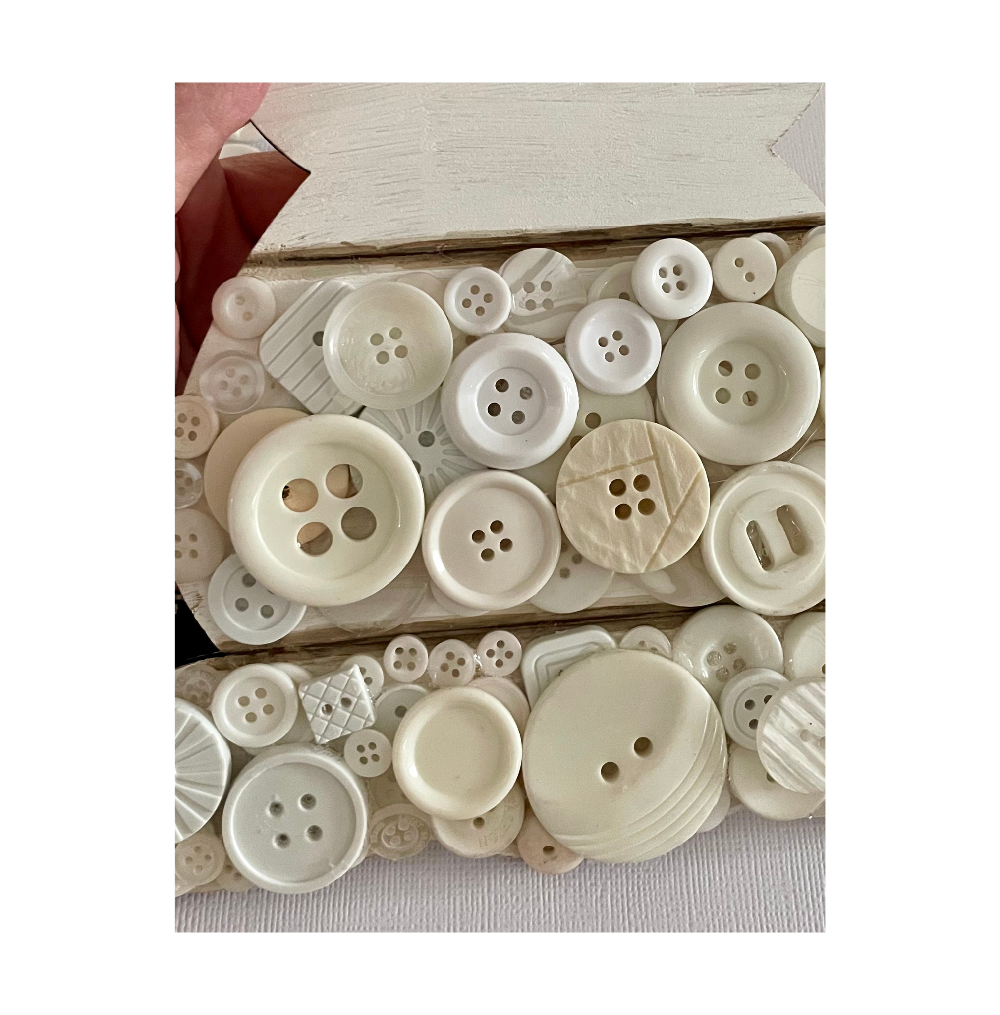 Some of these buttons I have had for ages. I see a Jenni Bowlin Studios button–remember them? Oh I loved their vintage style embellishments. Jeez, I could have had this white button so long it's almost an antique now. 😬