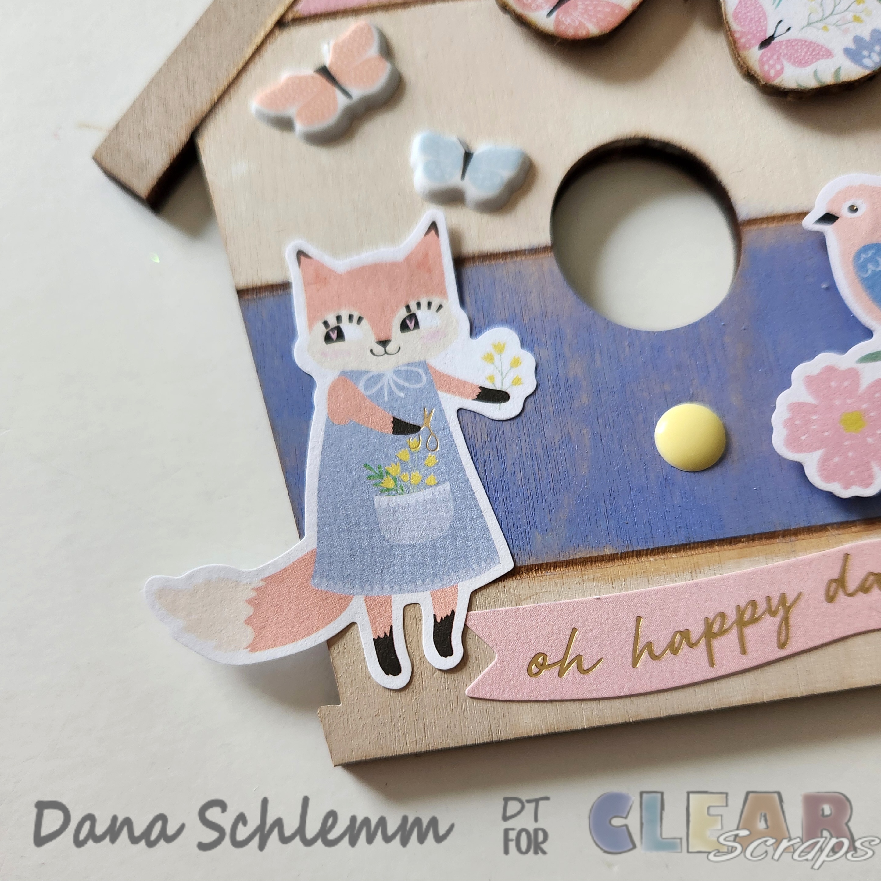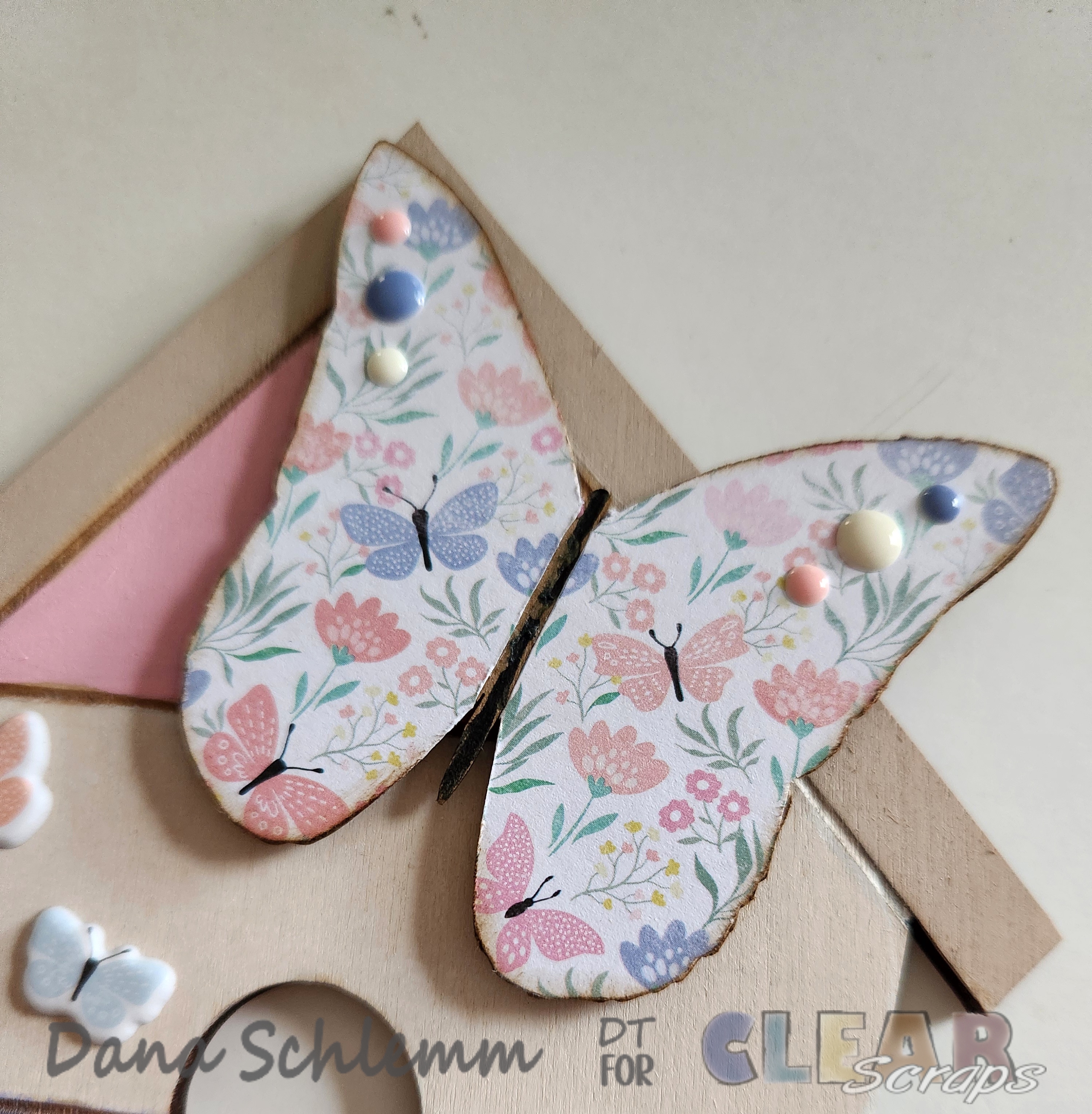 Dana here! Happy Spring! Today I'm here to share an easy Home Decor project. For our base, I chose Clear Scraps Birdhouse Shiplap Shape Small. Click here and Clear Scraps Monarch Butterfly Chipboard Embellishment Click here