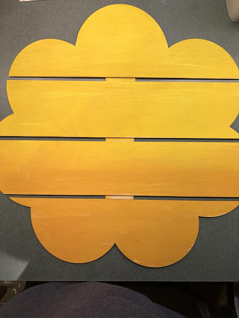 The first thing I did was paint the Flower Pallet yellow and then went with a mustard yellow to create an ombre effect. I think it turned out so pretty. After I was done painting I set aside to dry.