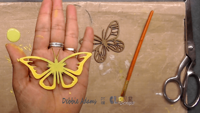 Next I painted the pretty Fancy Butterflies. I painted one yellow with a hint of lime green in the center. I really like how this one turned out.