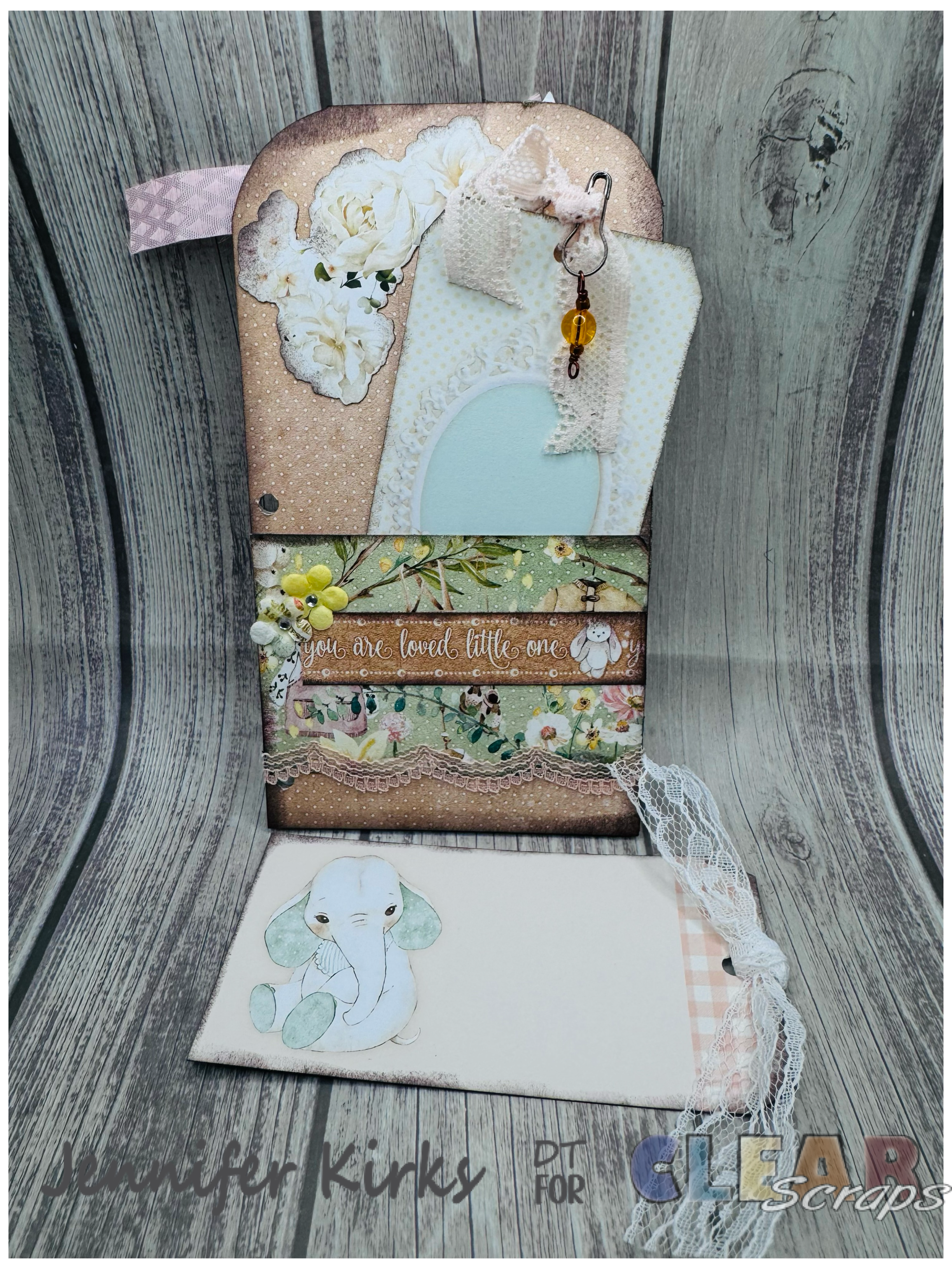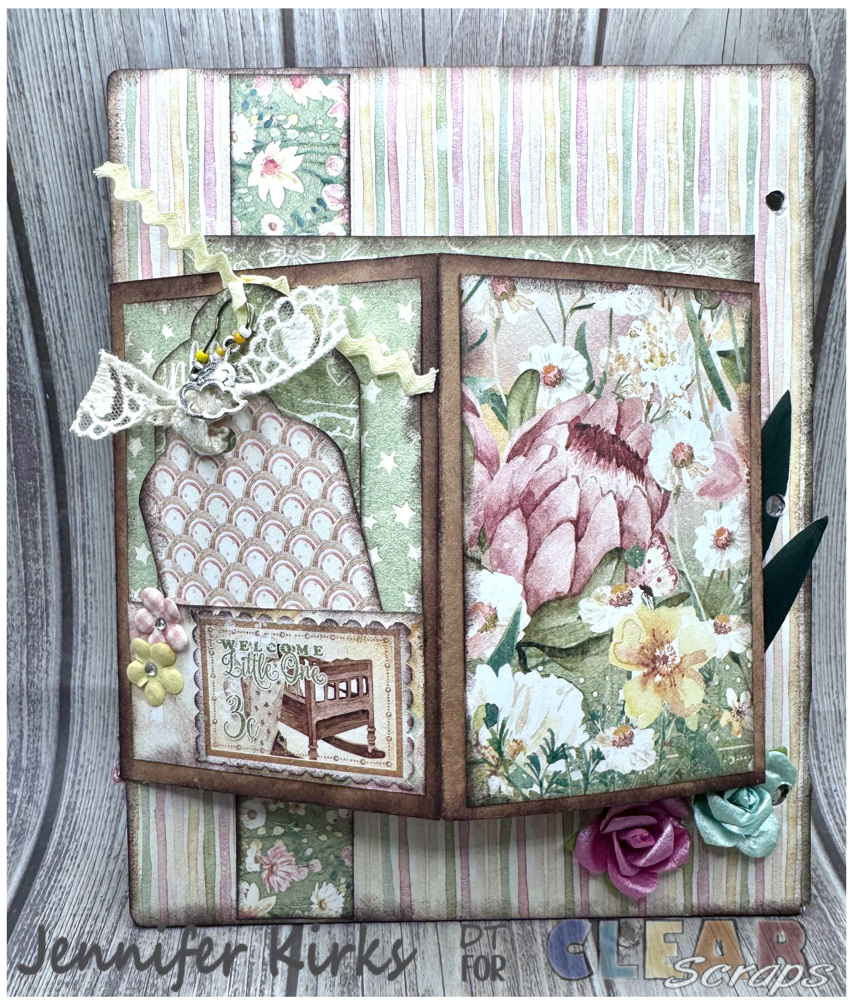 Below, you'll discover the remaining pages of the book, each thoughtfully designed to capture precious memories. I've incorporated a belly band on one page, complemented by 5×6 cards ideal for showcasing photos. Additionally, you'll find charming foldouts thoughtfully placed throughout the pages, providing space for journaling or displaying small pictures