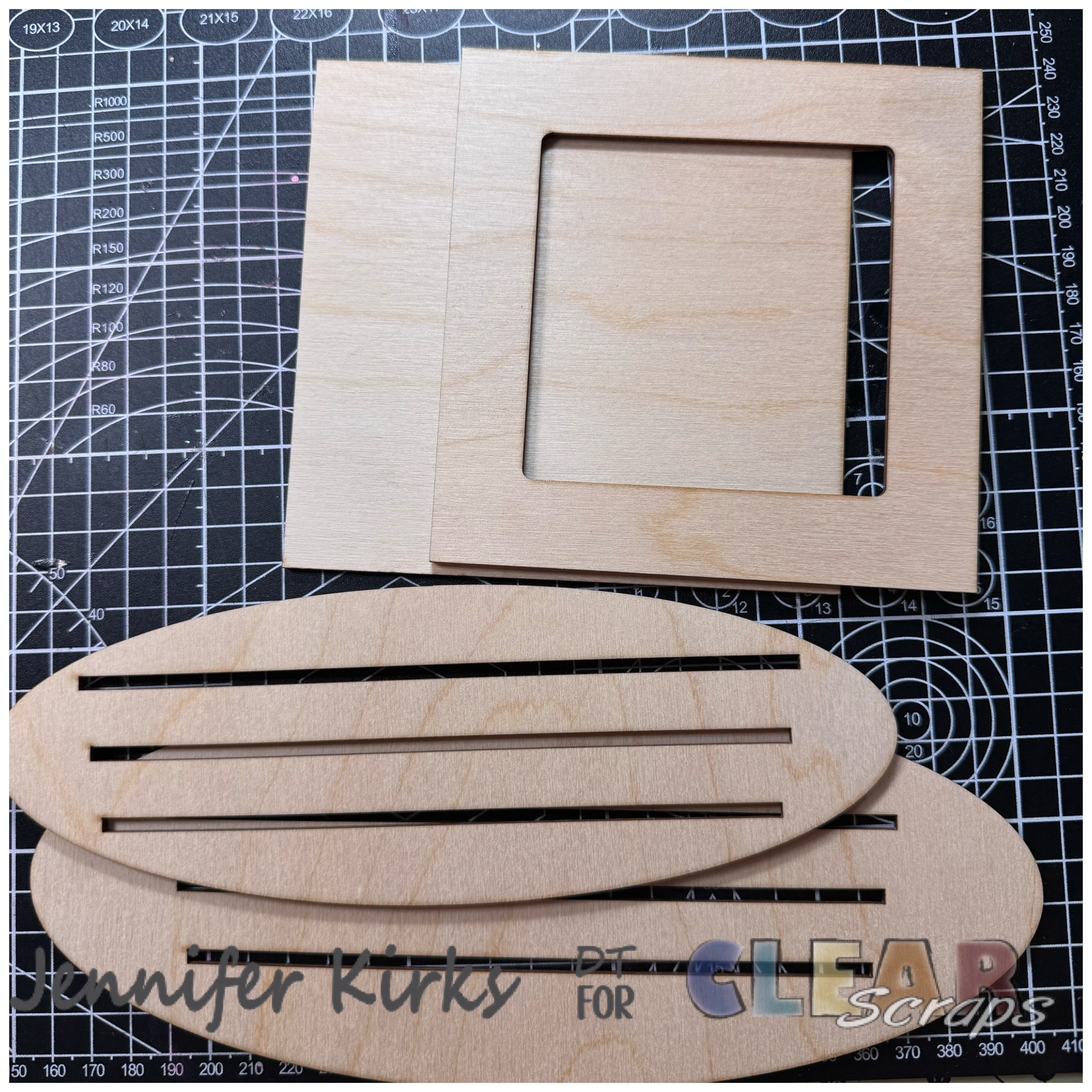Initially, I traced and cut the base pieces, meticulously using an X-Acto knife to trim the edges and create the slits. Next, I added depth by inking the edges with a sleek black Stazon ink. I did the same for the square photo frame piece.
