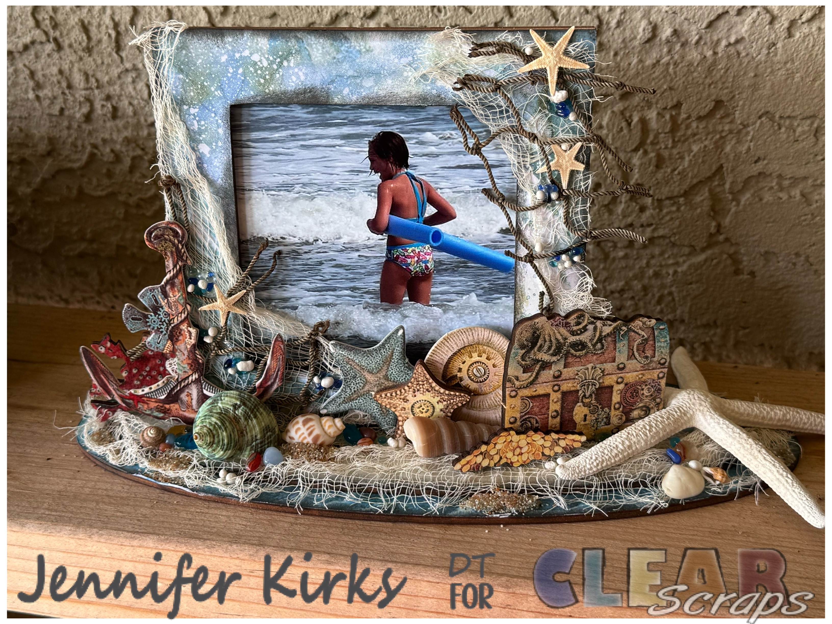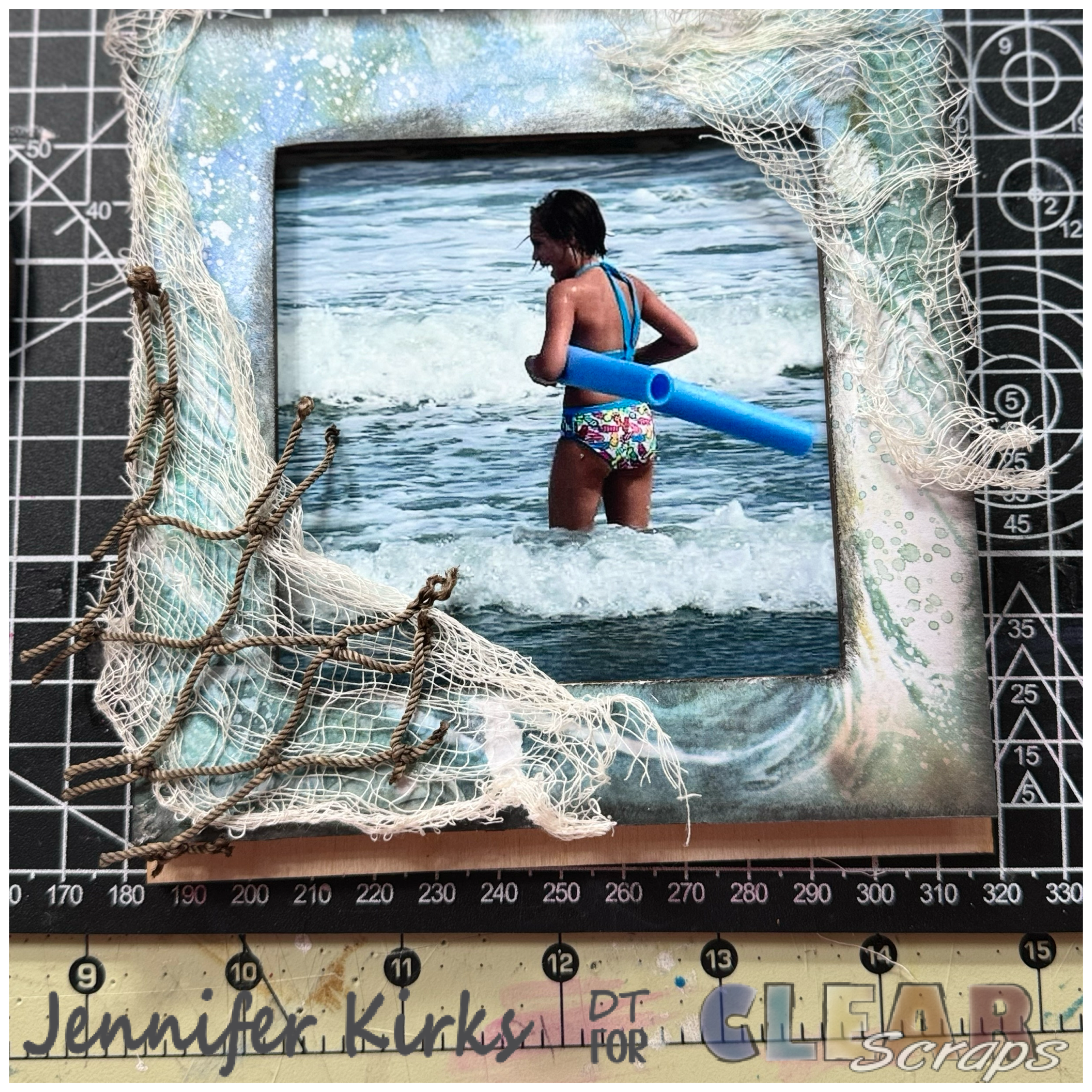 Hey there, creative pals! Ready to flaunt those fantastic beach snapshots? Check out this picture frame I whipped up using the 2-piece square deco frame and the vibrant Song of the Seas Stamparia paper line. The combination of shells, sand, fisherman's net, and sea glass truly harmonizes to create this captivatingly beautiful beach-themed frame. square deco frame