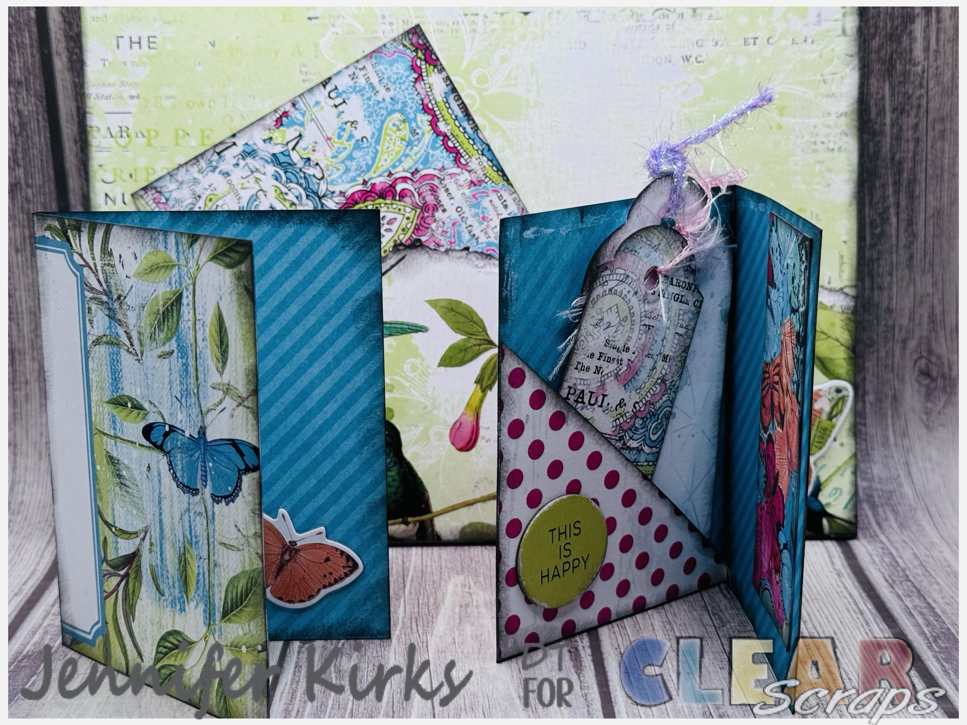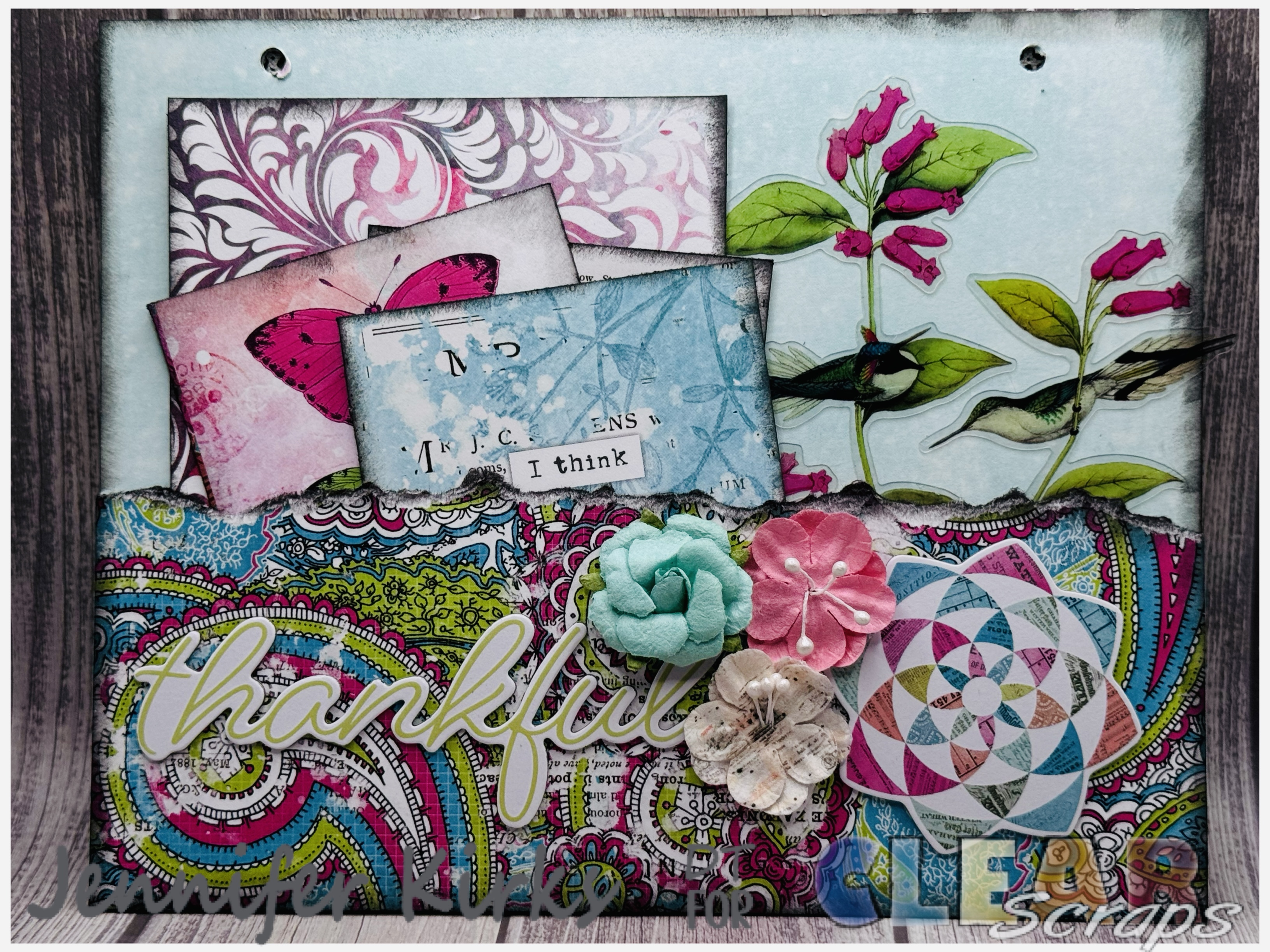 I'm thrilled to introduce my latest creation to you all – a delightful new album crafted with the versatile chipboard envelope base and the vibrant Graphic 45 Kaleidoscope paper collection. This album bursts with lively colors, featuring an array of pockets, tags, and ample space for both photos and journaling. You can find the envelope chipboard album here.