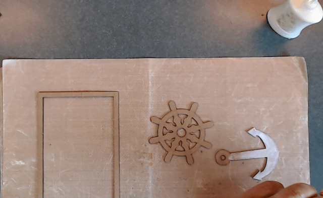 helm and anchor. Place some glue on the anchor first.