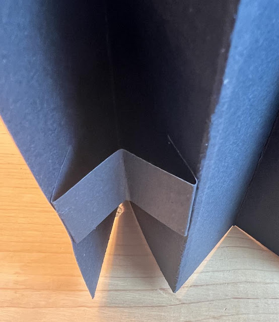 Here is the the stopper. simply cut a 1/2 x 2 inch piece and fold each end about 1/2 inches in and then fold in the middle. Adhere each end to the inside of of the card, as shown, it kind of looks like a "W".