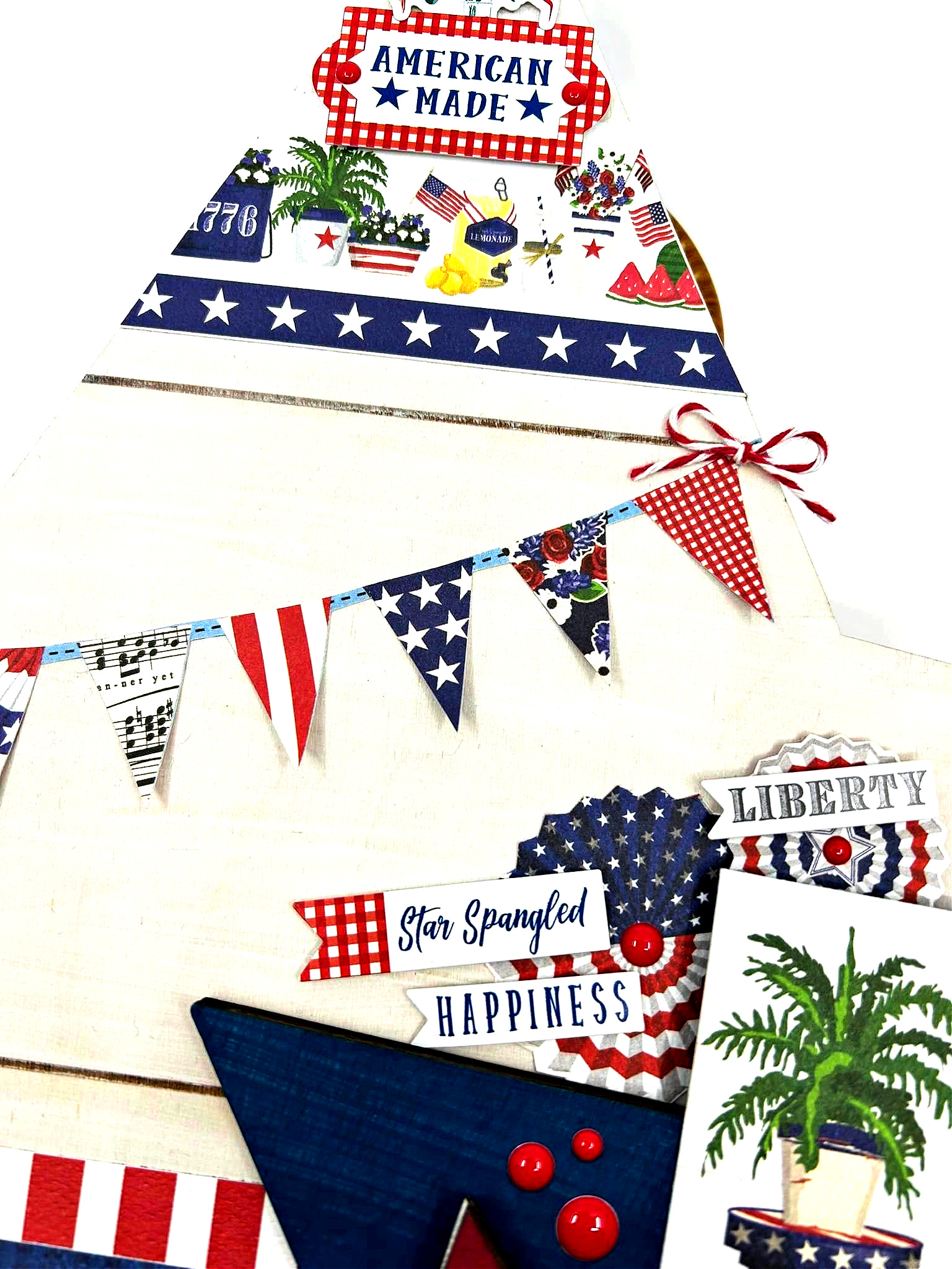 More twine and enamel dots in addition to some banner stickers finish off this decor piece. It's ready to go to for any patriotic holiday! These Shiplap Shapes come in many shapes and three sizes so you can use a combo like I did for this project, or just use one. Make sure to visit the store HERE to find them all!