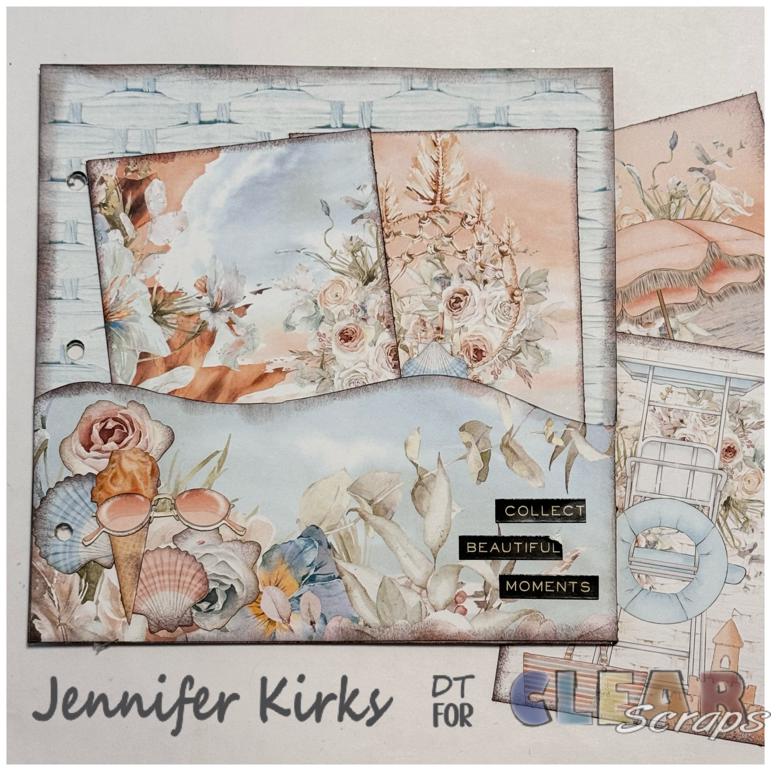 Immerse yourself in the essence of summer with our chipboard albums coupled with the delightful hues of Mintay Sunset Beach paper, featuring soft oranges, blues, and greens, evoking the perfect summer vibe. Each page is meticulously crafted; I personally traced and delicately cleaned the edges with an exacto knife, lending a touch of precision to every detail. To enhance the rustic charm, I gently brushed brown ink along the edges, adding a subtle yet captivating dimension to the album.