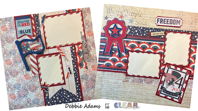 Today I have a two page scrapbook layouts that feature the Clear Scraps Mini Shaker Flag and the Chipboard Ribbon. These two layouts are so simple and easy I have all the details below for you as well as the links to both of the products down below.