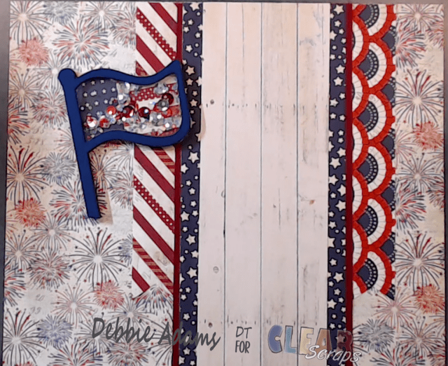 Here is the finished layout. I love the the Mini Flag Shaker looks next to the firework stickers and on this pattern paper, it looks amazing.