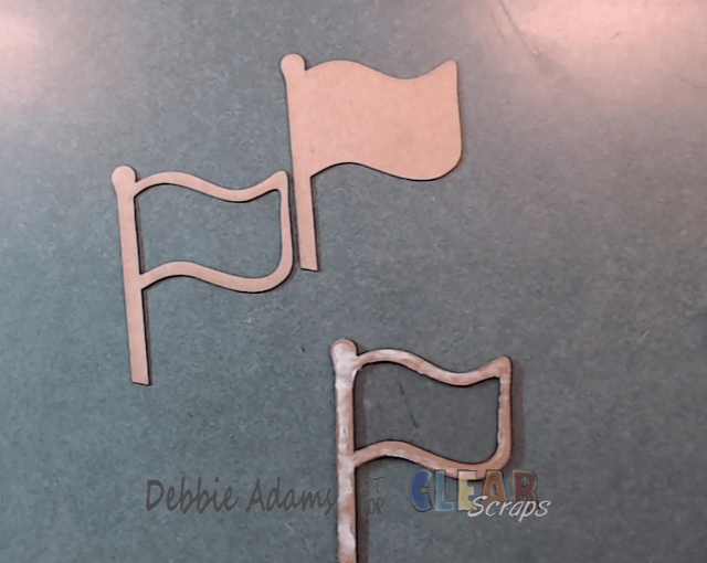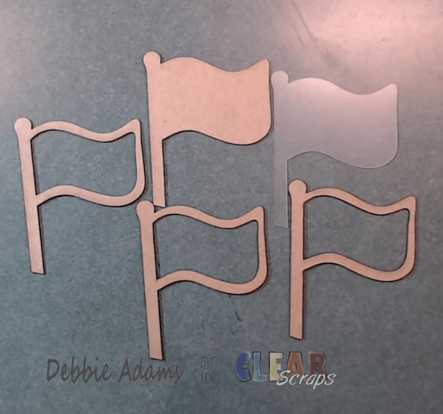 Next place your shaker bits into the Mini Flag Shaker, adhere the painted frame on to the acetate and adhere Flag to your layout.