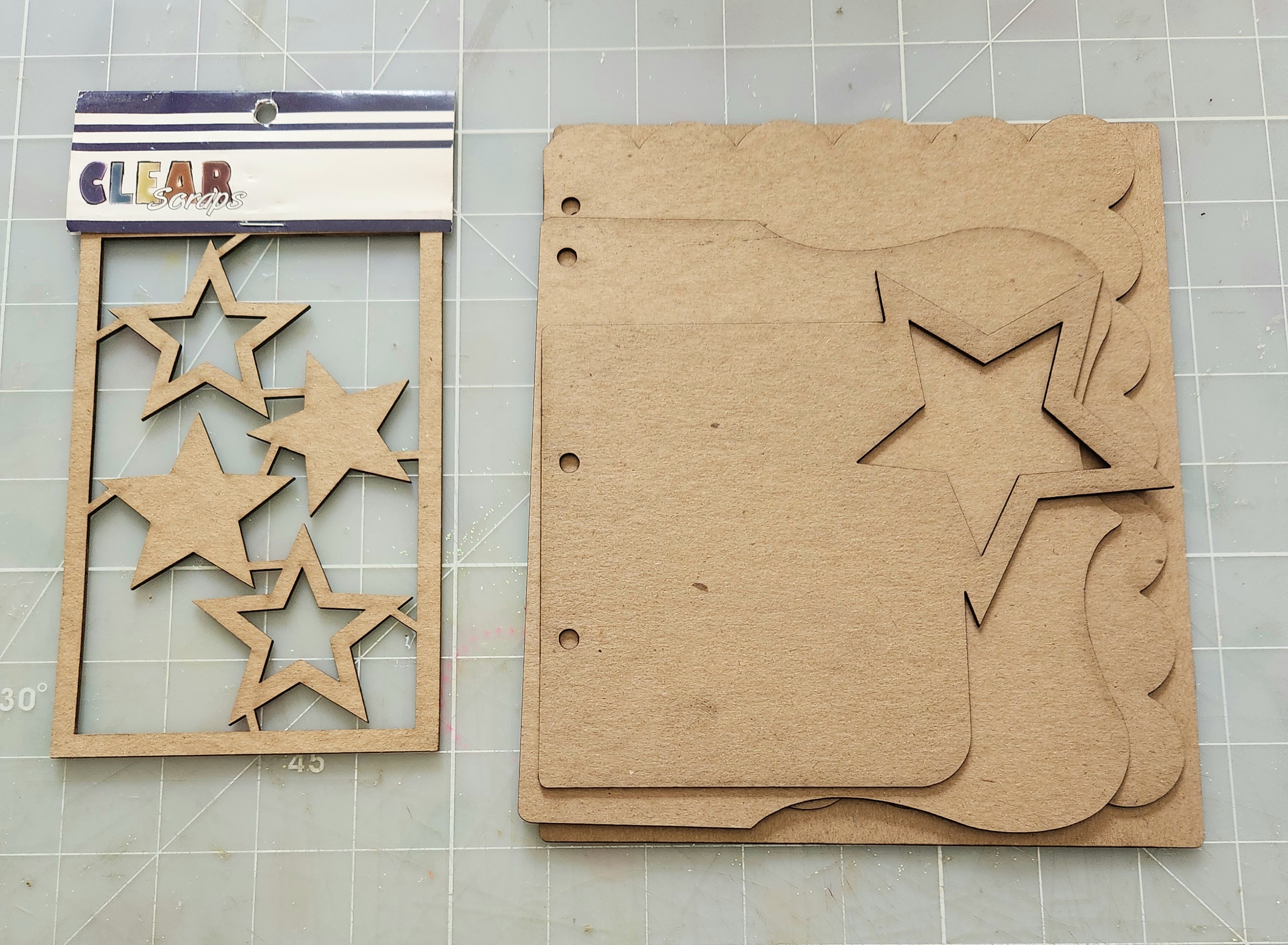 Today's project features Clear Scraps newest Chipboard Layered Star album Click here