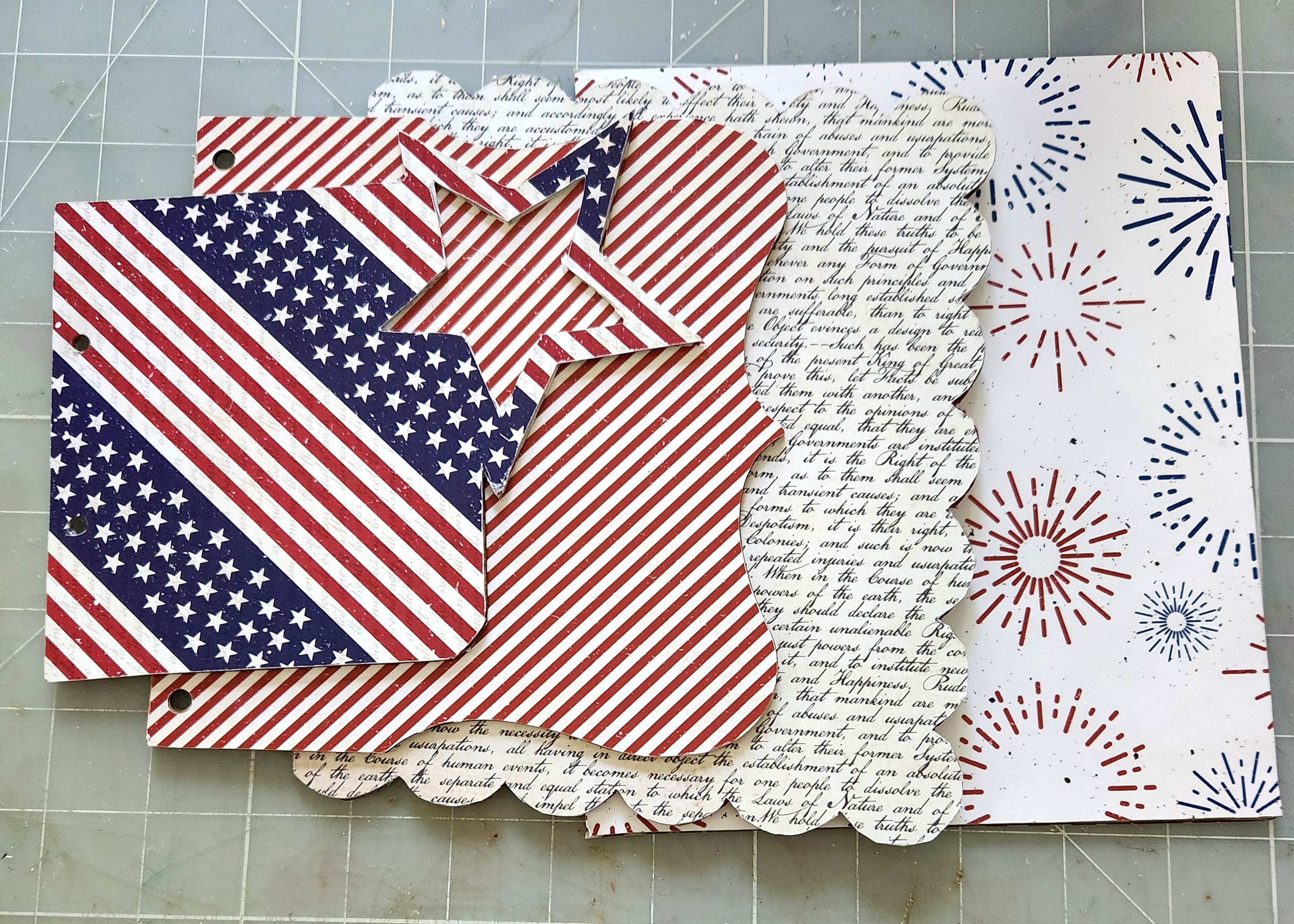 The papers I chose are from Frank Garcia's "Americana" collection. But use any papers you have in your stash.