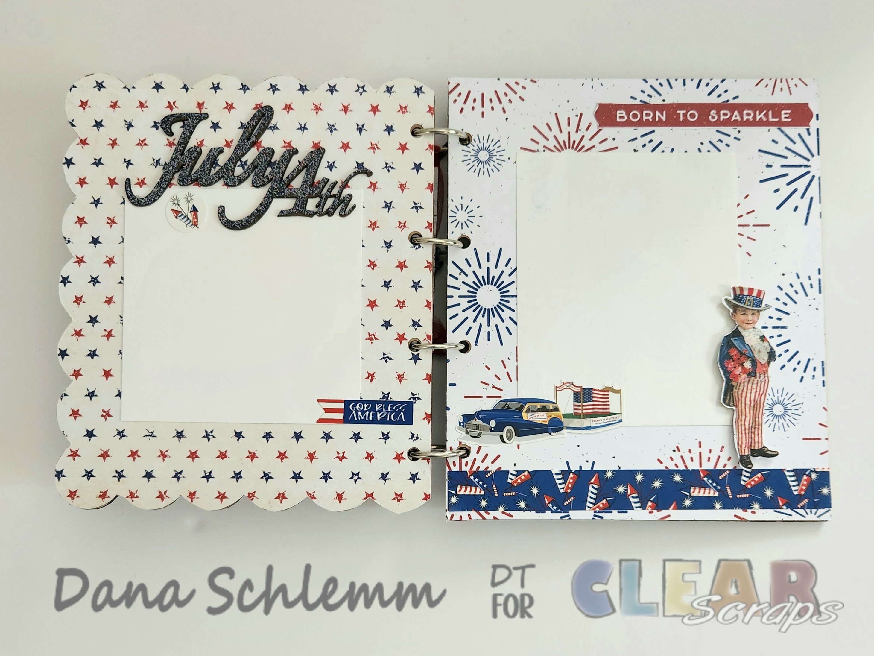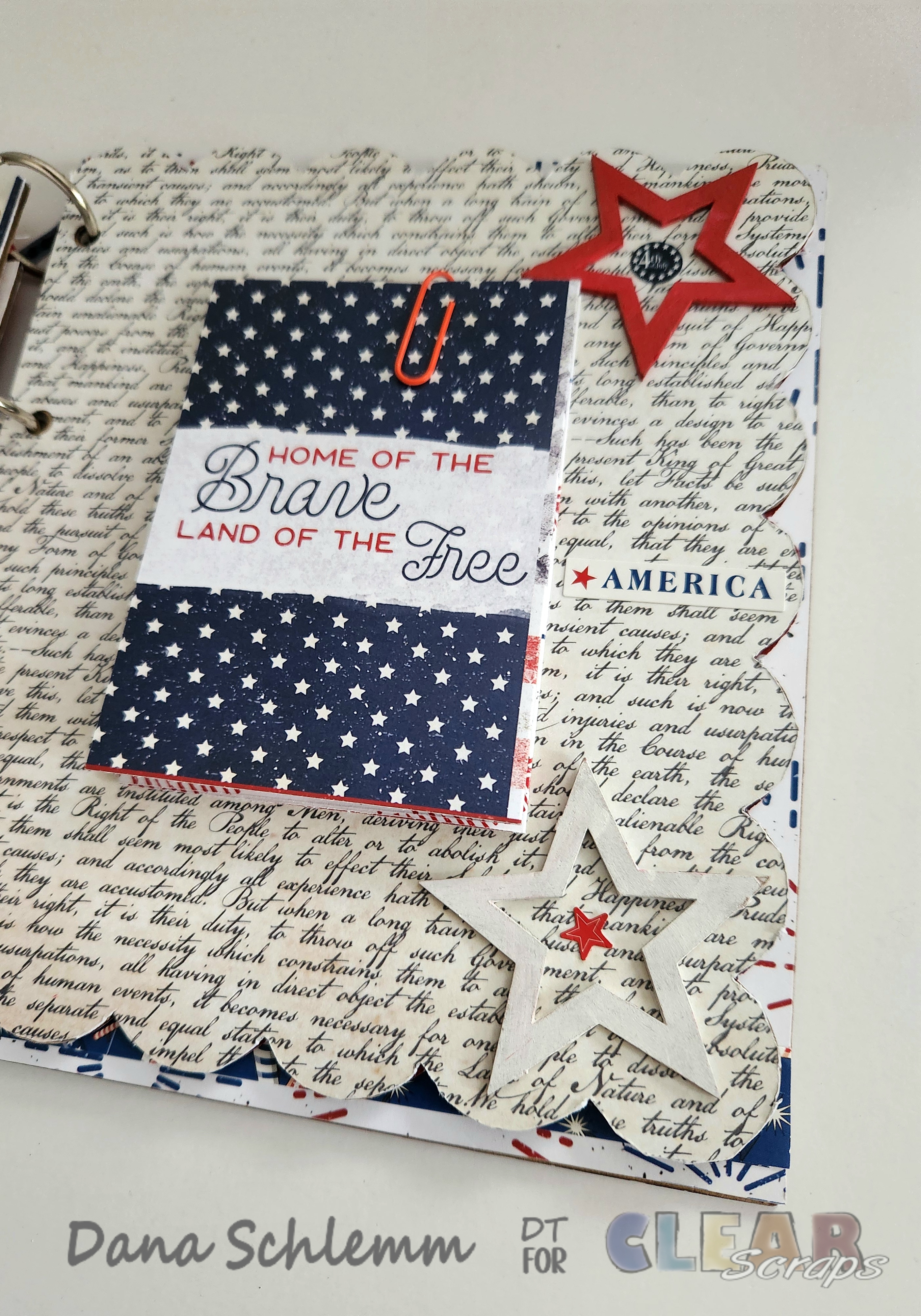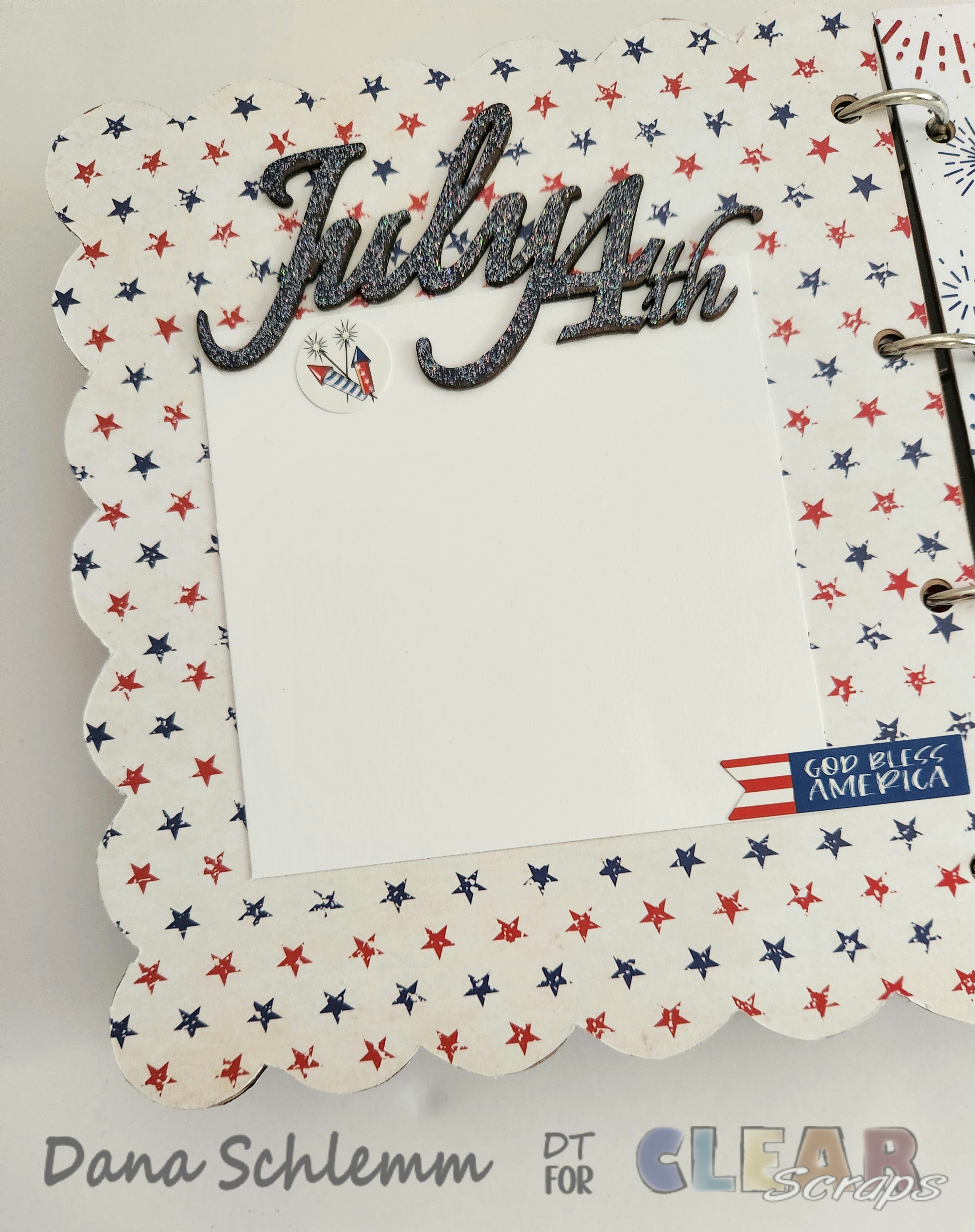 This album is perfect for 4th of July photos! I'll also be using Clear Scraps July 4th chipboard word title Click here and Multistars chipboard embellishments Click here