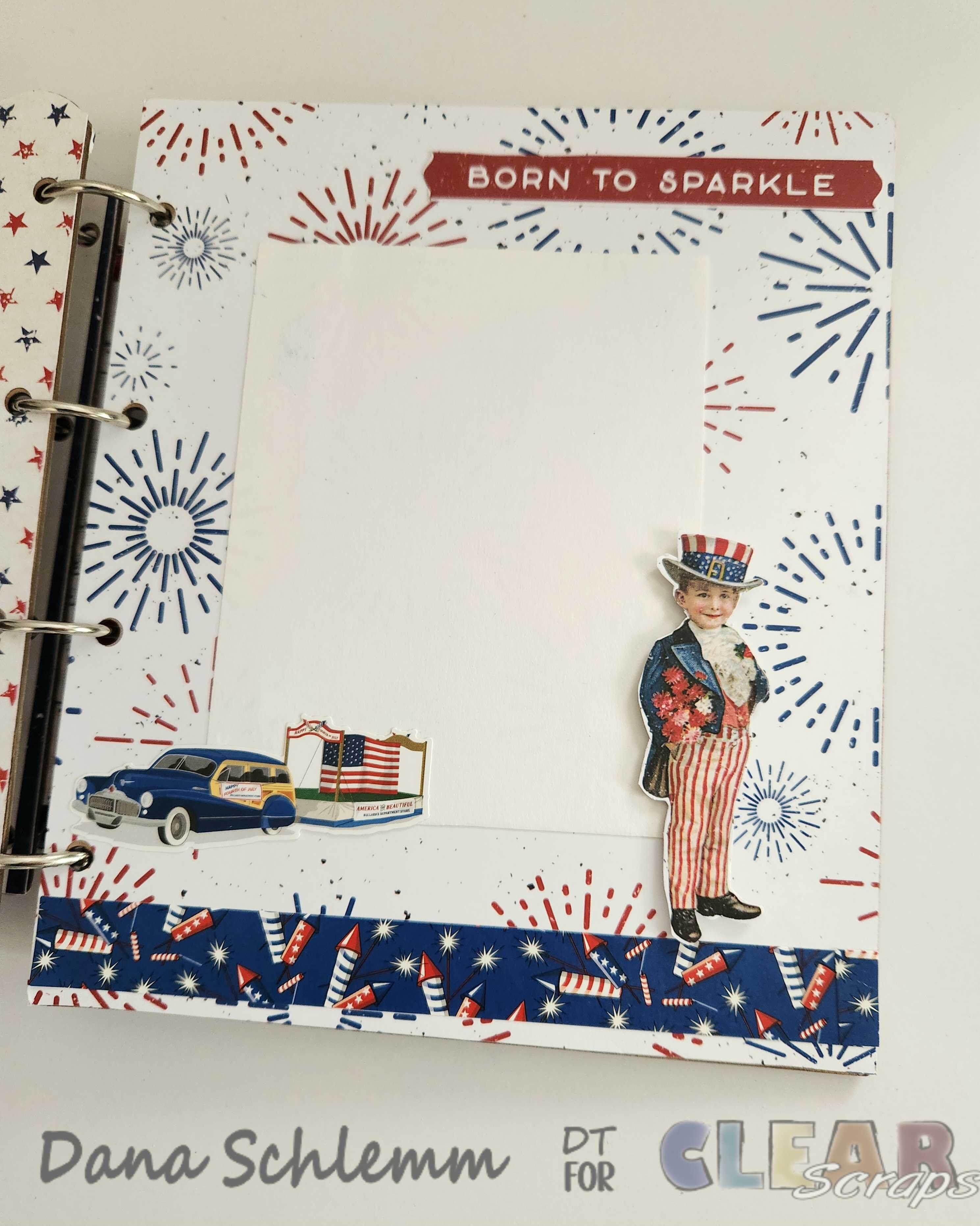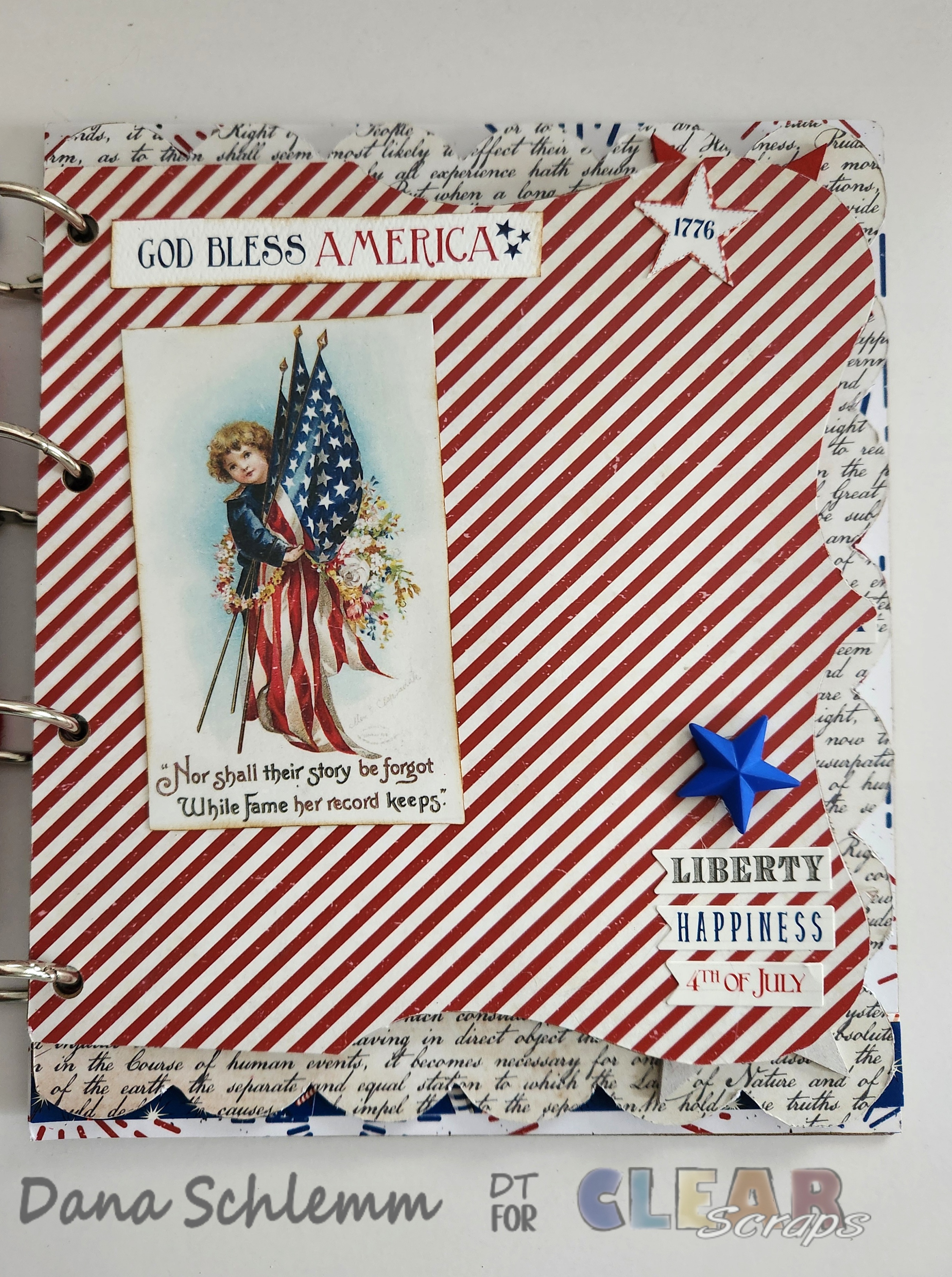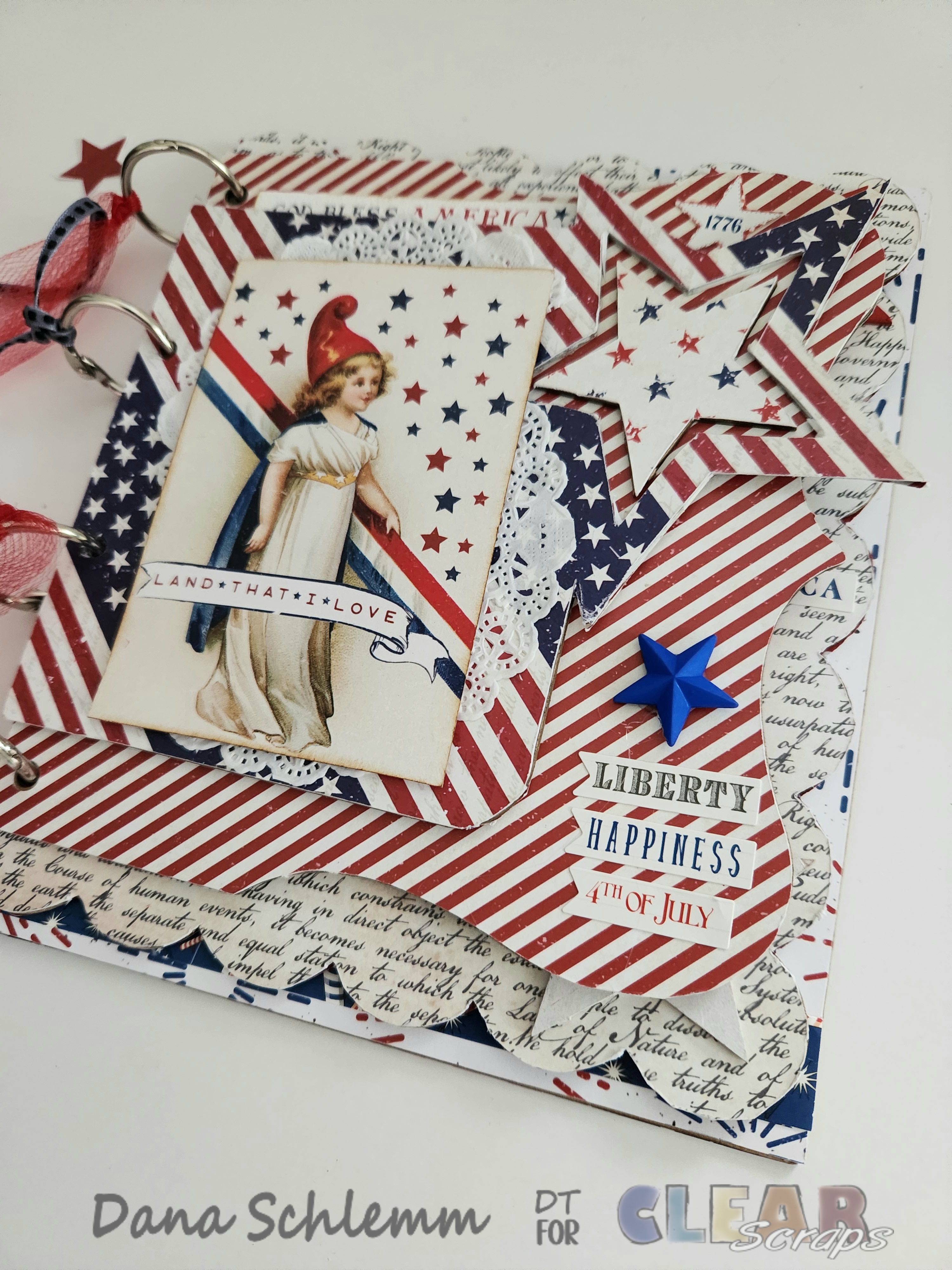 This album is perfect for 4th of July photos! I'll also be using Clear Scraps July 4th chipboard word title Click here and Multistars chipboard embellishments Click here