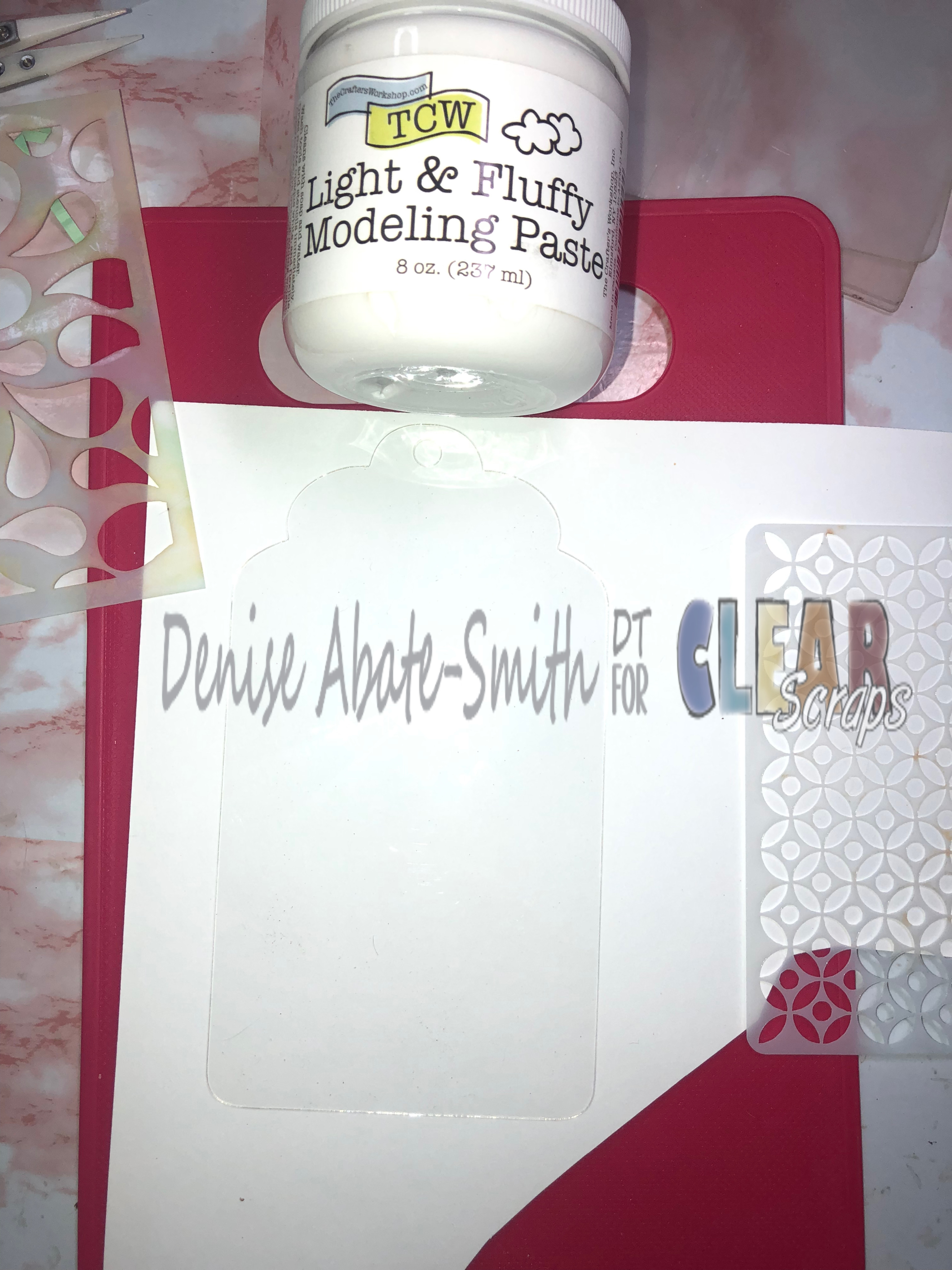 I had on purpose left some oxide inks on the stencils that I knew would integrate perfectly with the white modeling paste.