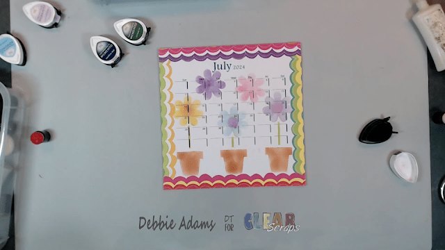 6 inch Flower Pot stencil and inks. I thought it would be fun to ink up the calendar with the flowers. You can still write in any appointments or events in the calendar.