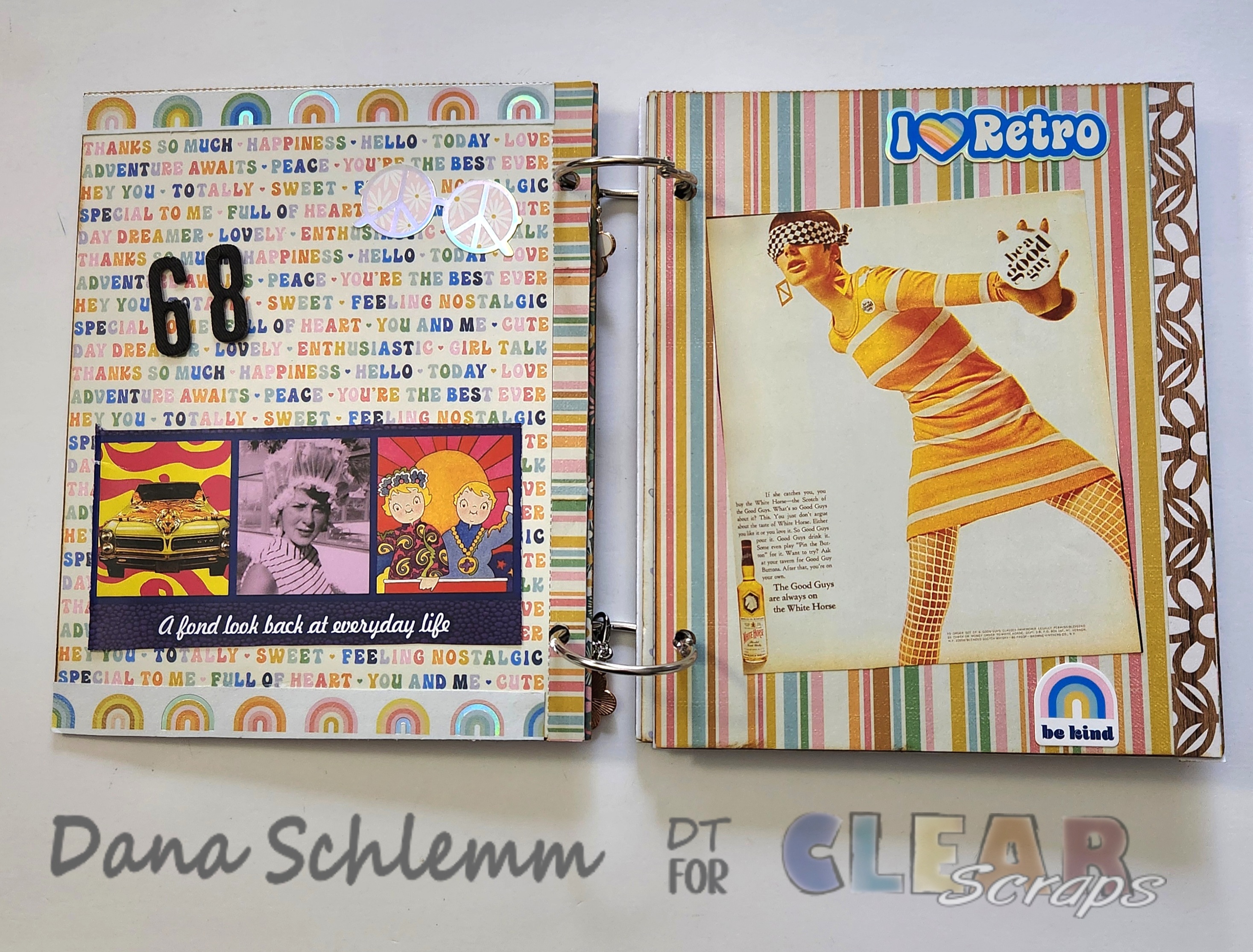 Happy July to you! I'm back on the Clear Scraps blog to share my 1960's Flower Power album. I love the retro look and styles of the 60's! That is the theme I chose for my album today.